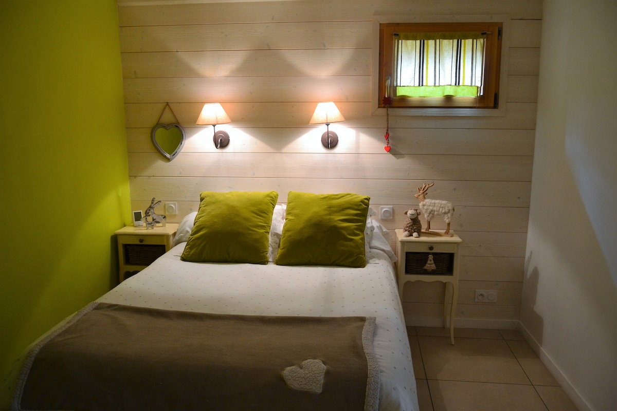 Bernadette et Alain propose un appartement de 35 m² tout rénové, 2 pièces cuisine au rez de chaussée de notre chalet avec un parking privé. - Dans la chambre : 1 lit 160 x 200 ou 2 lits 80 x 200. Merci d'indiquer votre choix avant votre arrivée. - Le linge de toilette ainsi que la literie sont compris dans le prix de location. -MENAGE: Le nettoyage est à effectuer avant votre départ. - Sur place il est possible de choisir l’option frais de ménage à 20 € Pistes ski à 3/4km, randonnées, plan d'eau
