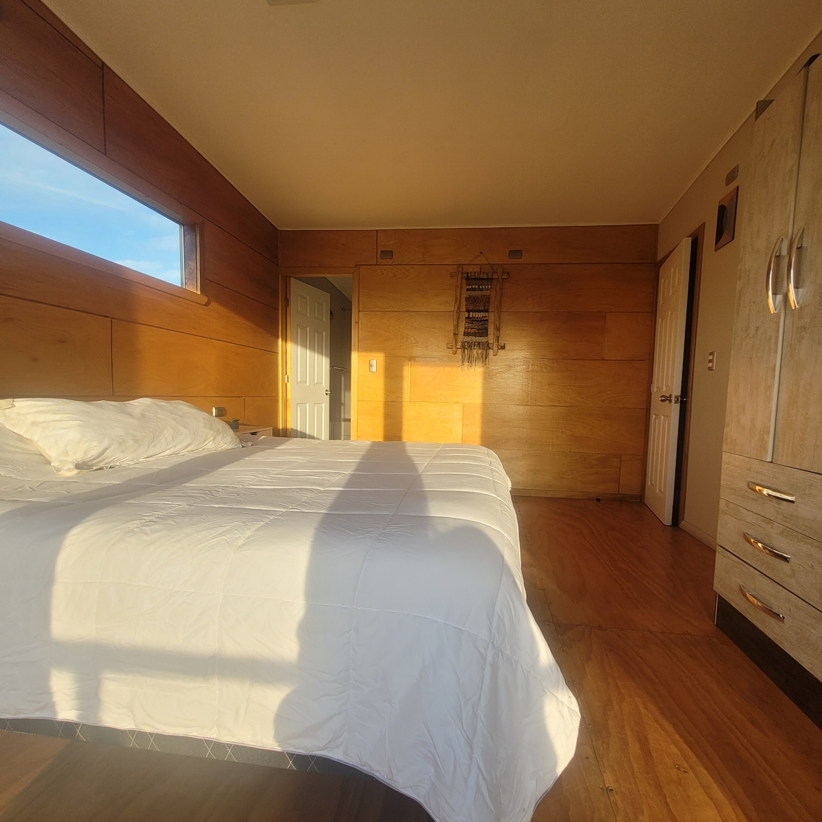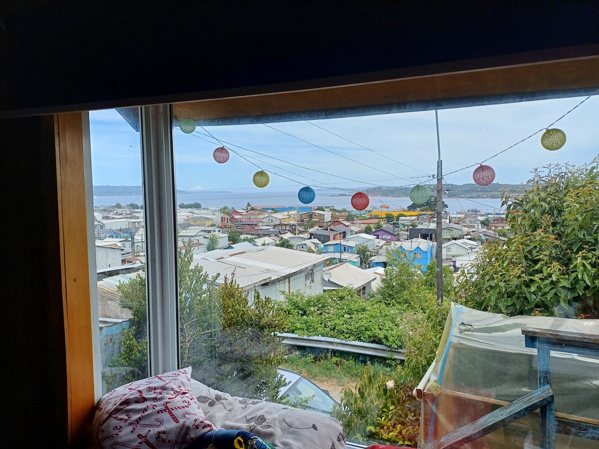 La lluvia afuera, el mar a sólo 10 pasos, los más bellos atardeceres de Chiloé, y esa mágica vista en todas y cada una de las ventanas de esta pequeña y acogedora casa, toda de madera, siempre calefaccionada con el fuego de la estufa. ¡Leña incluida! A pocos metros del muelle histórico y en pleno centro, cerca de los almacenes, restaurantes y terminal de buses. Precio promocional por alojamientos de una semana o más. Ven y vive Queilen, donde la tierra habla con el mar.