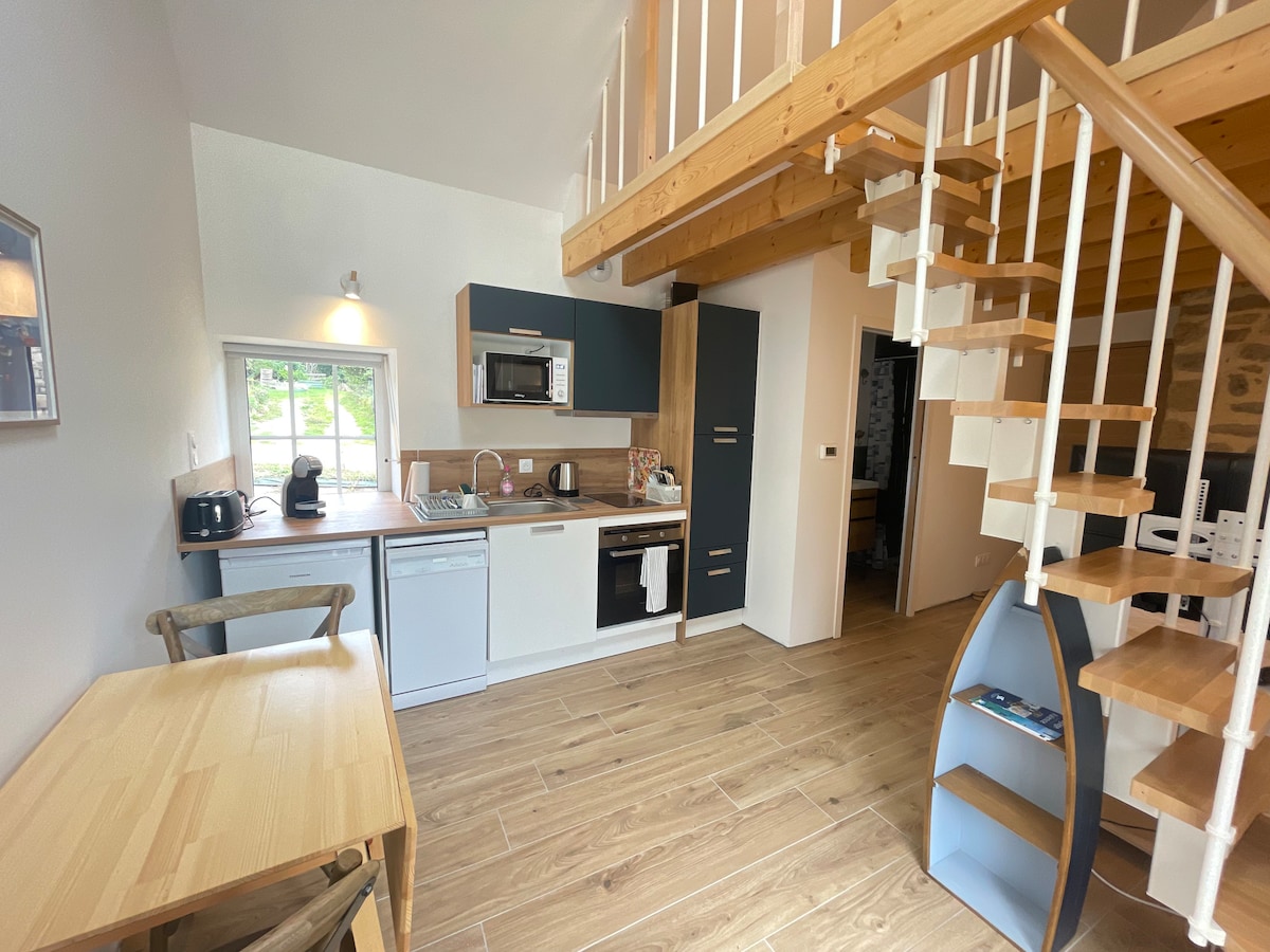 Soyez parmi les premiers à découvrir notre Ecolodge sur les montagnes bretonnes du Menez-Hom face à Locronan et la baie de Douarnenez. Entièrement rénovée en 2022 (pierre de taille, matériaux naturels et biosourcés) le gîte dispose d'un grand salon/salle à manger avec charpente cathédrale, d'une salle de bain ultra moderne avec douche à l'italienne, d'un WC indépendant, d'une grande cuisine très lumineuse, d'une chambre très cosy avec ses vitraux et un canapé-lit dans le salon au coin du feu.