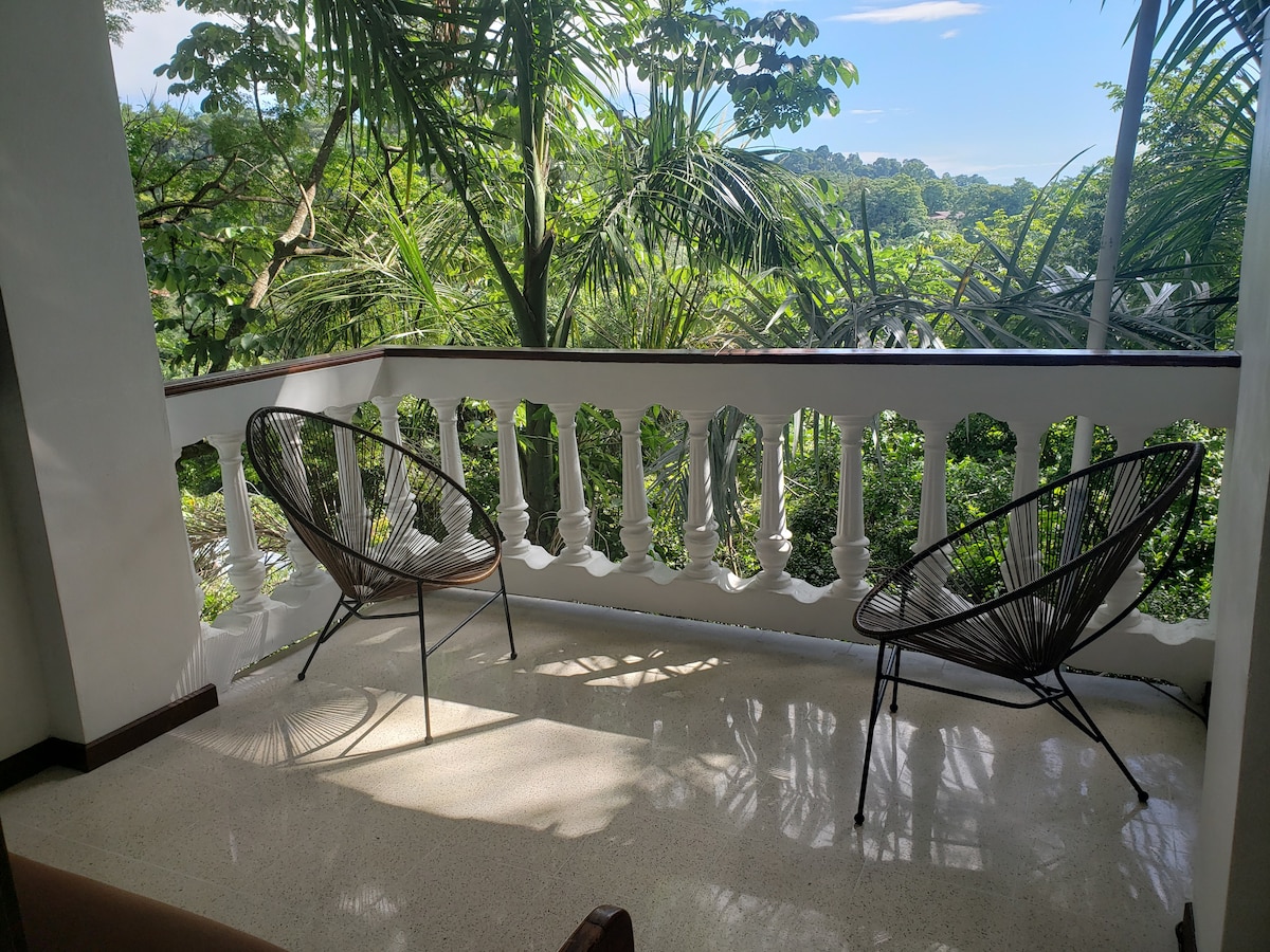 2- person rainforest lodge 10 minutes away from Quepos downtown, 5 minutes from local airport, 15 minutes from Manuel Antonio National Park. Exclusive private property with great views, secondary forest, birdwatching, monkeys, great place for couples to stay while enjoying Quepos/Manuel Antonio area. Ocean view pool on top of the unit is now available. Great for relaxing after a hot day of hiking Manuel Antonio National Park.