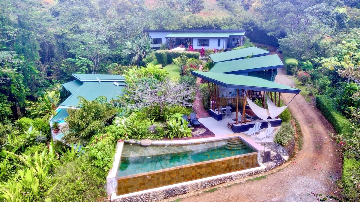 Lipstick Palms is a unique villa surrounded by jungle and rainforest, overlooking the Costa Rican Pacific Ocean. Wake up to the sounds of colorful toucans and playful monkeys ina secluded and private sanctuary near Dominical, Costa Rica. Private waterfall on site. YOUR HOSTS LIVE IN THE HOME (onsite hosts), and are available to welcome you and provide an unforgettable stay in this Balinese style villa. A fabulous breakfast is included in the base rate