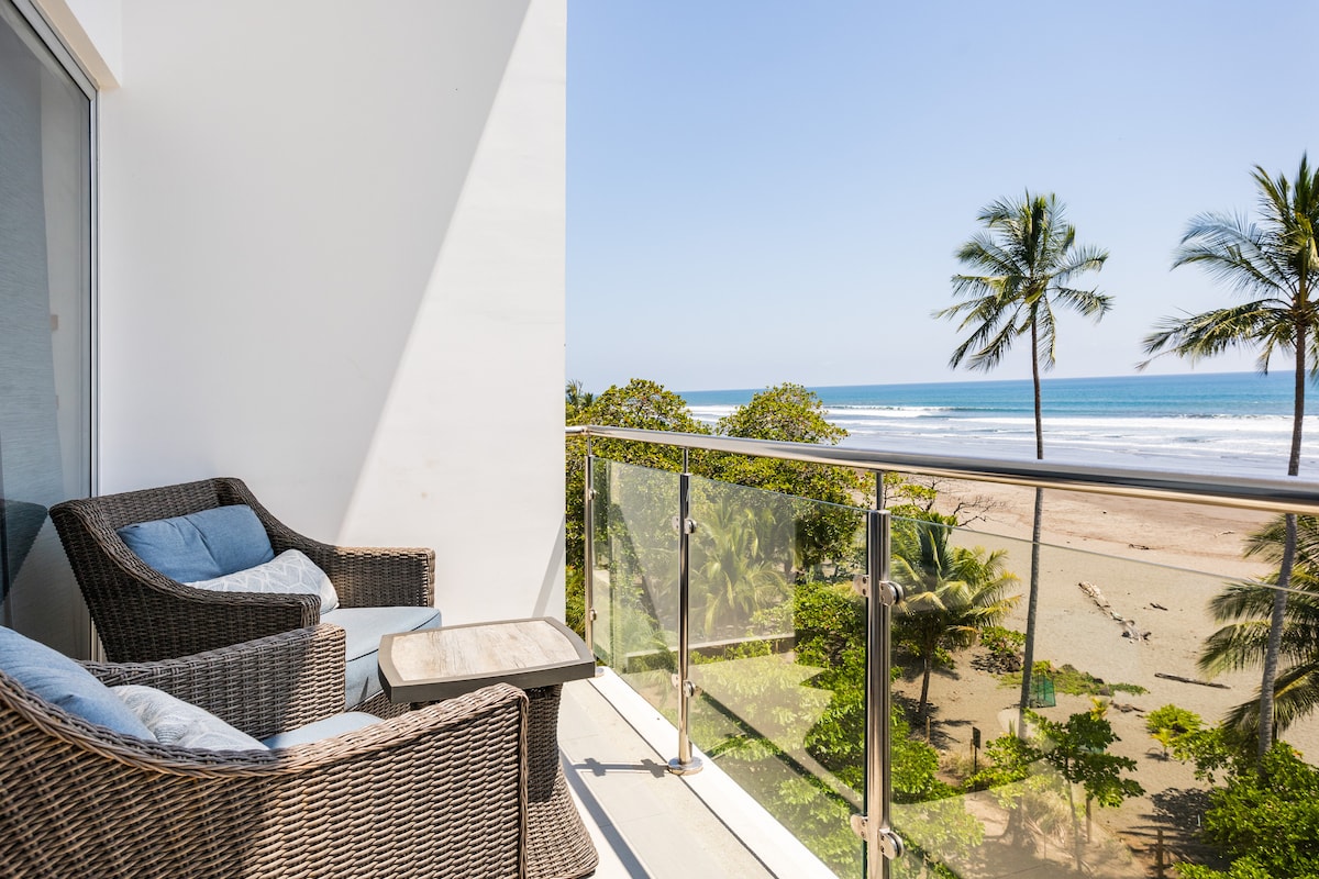 Stunning Condo at Bejuco Beach Enjoy breathtaking Pacific Ocean views from this 4th-floor condo at Bejuco Beach, one of Costa Rica’s largest unspoiled beaches. The condo is fully equipped with modern amenities, including 100 Mbps internet and air conditioning. Within a private complex, you'll have access to sports facilities and pools. Across the street, find a plaza with restaurants and a supermarket. Nearby are Playa Hermosa and Jaco. Manuel Antonio National Park is just 50 minutes away.