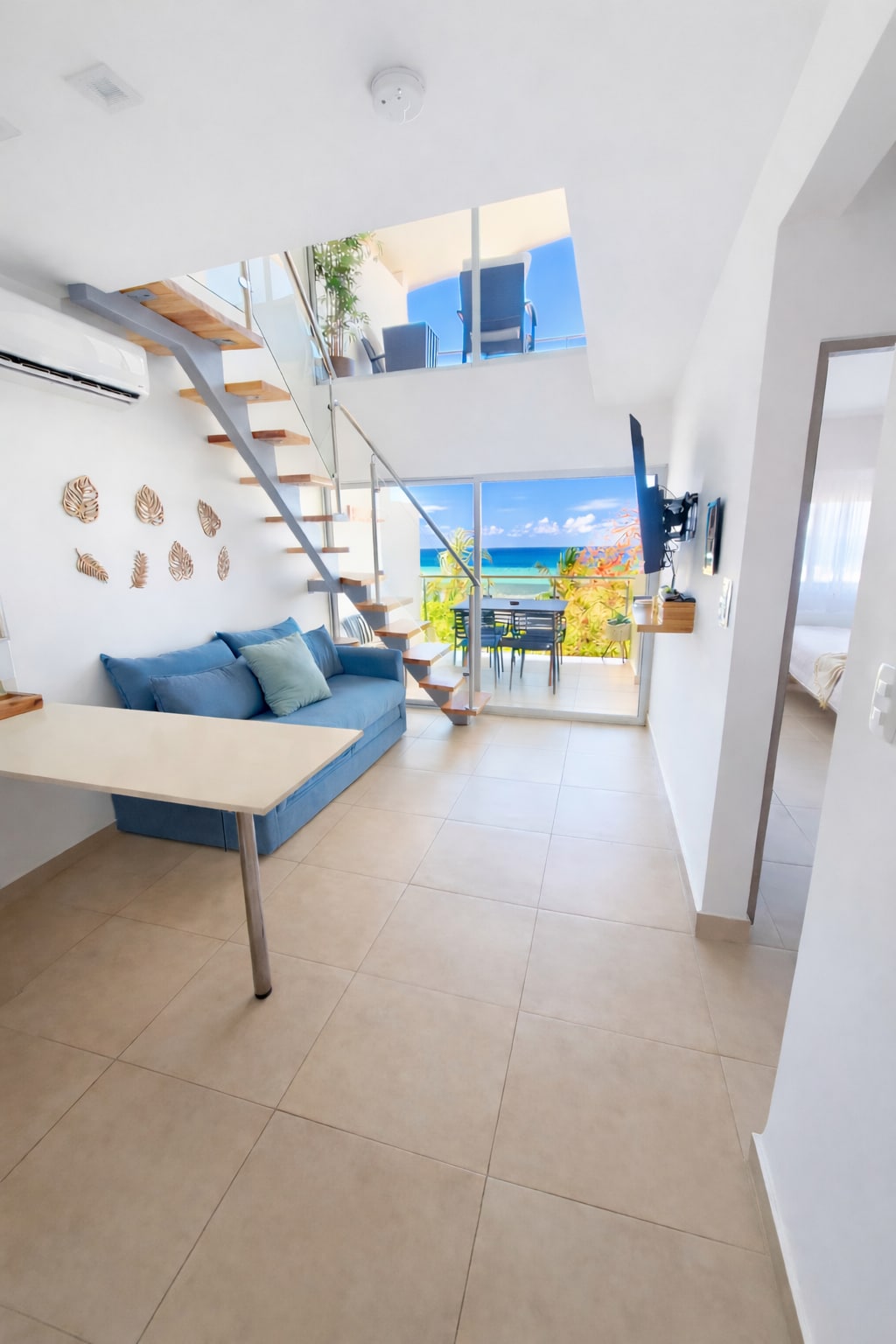 Imagine sleeping with the sound of the waves, waking up with the song of parrots, having breakfast on the balcony with sloths in front, drinking cocktails with your feet in the sand under the coconut trees, enjoying the paradise beach and the swimming pools then end your day on the rooftop to watch the stunning sunsets. Welcome to a paradise in harmony with nature and enjoy a very comfortable apartment in which we have carefully chosen the furniture and fittings to offer you a pleasant stay.