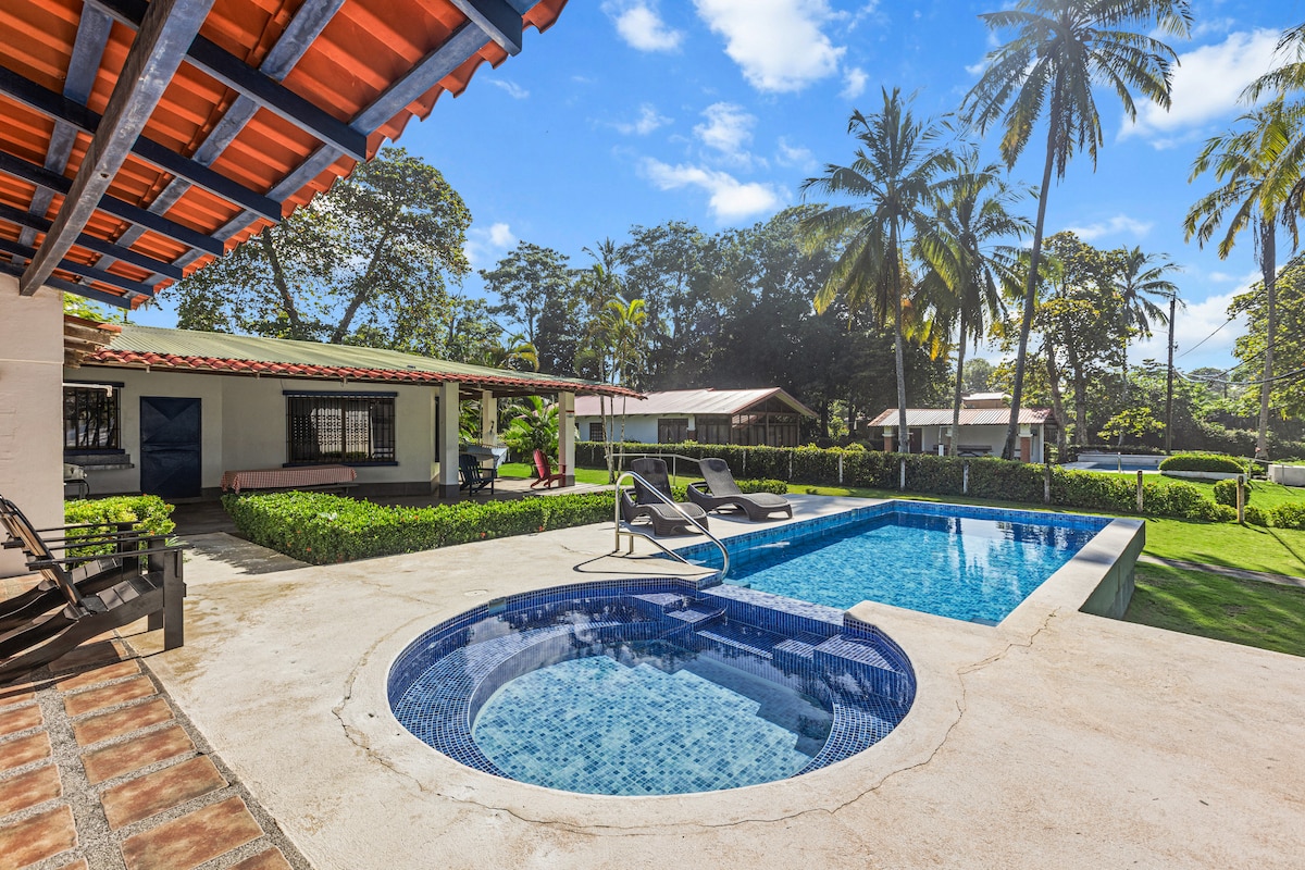 Discover Casa Pelícano, a boutique jungle retreat close to the beach, just 5' from Playa Bejuco and a short scenic drive to Playas Jacó, Hermosa, Manuel Antonio & Marina Pez Vela in Quepos. Surrounded by lush nature, monkeys, macaws & butterflies, this cozy escape features AC, fast Wi-Fi, full kitchen & laundry, 1BR w/ Smart TV, sofa bed, 2 decks, BBQ/firepit, Jacuzzi/Spa & secure parking. Ideal for surfing, relaxing or remote work. A peaceful, private paradise — your perfect Costa Rica getaway.