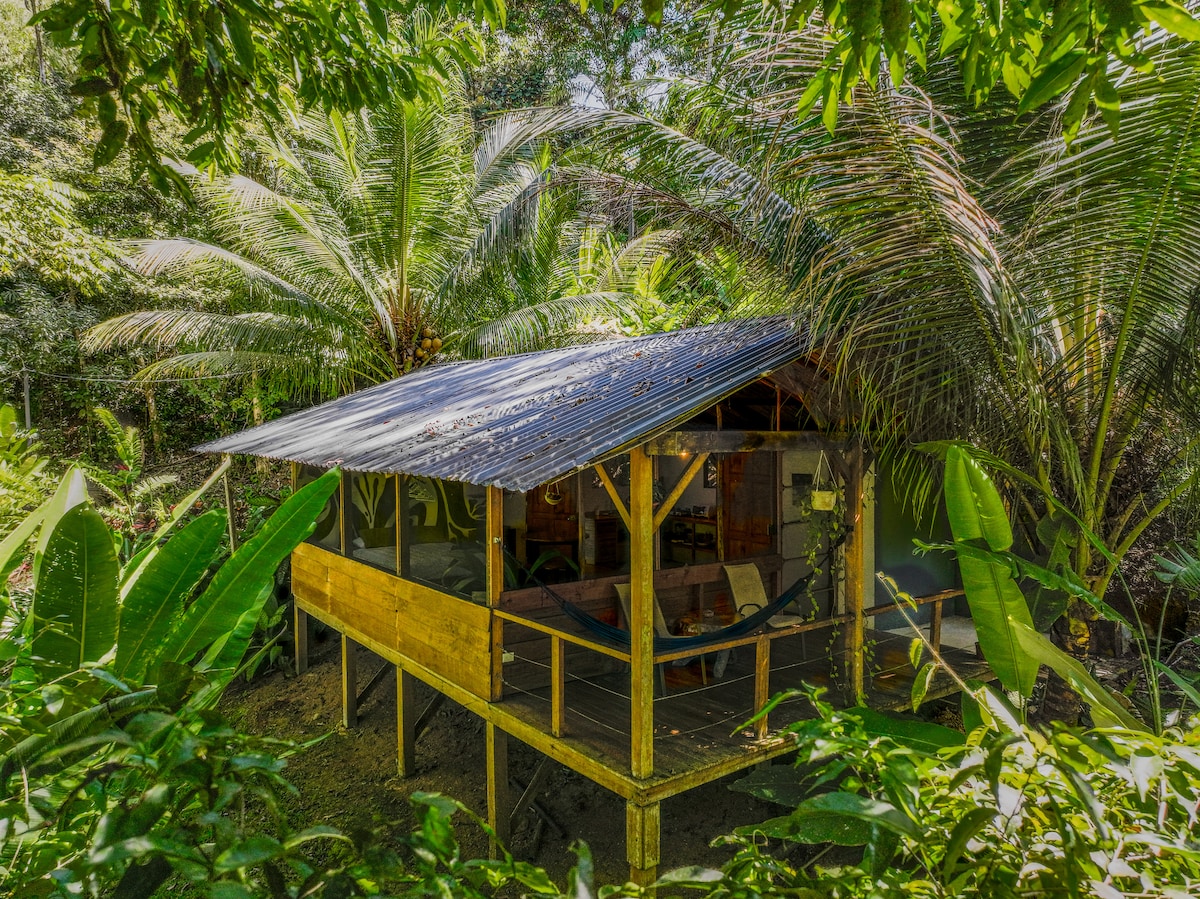 Wake up to the chirping of birds and greet the sunset with the sound of monkeys and other typical rainforest animals in this open-concept, handcrafted cabin made of native wood, 300 m from one of the most beautiful beaches in the South Pacific, Playa Chamán. The cabin has two floors, downstairs an open space with a living -dining - kitchen, a shower surrounded by plants and a small terrace. Upstairs, a spacious bedroom with mosquito netting and a balcony with an incredible view and hammock.