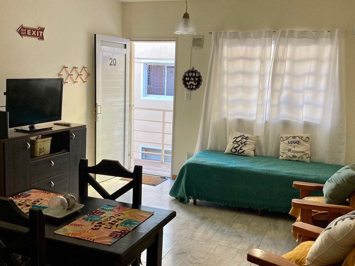 Disfrutá de éste cómodo y amplio departamento, ubicado en pleno centro en la ciudad de Necochea, sobre peatonal 83 y 2, a media cuadra de la playa. Posee 2 habitaciones, 2 baños, y futón de 2 plazas en el comedor Smart TV de 50" WIFI Capacidad para 5/6 personas Fresco en verano, con buena ventilación y ventiladores de techo Posee calefactores para mantener buena temperatura en invierno