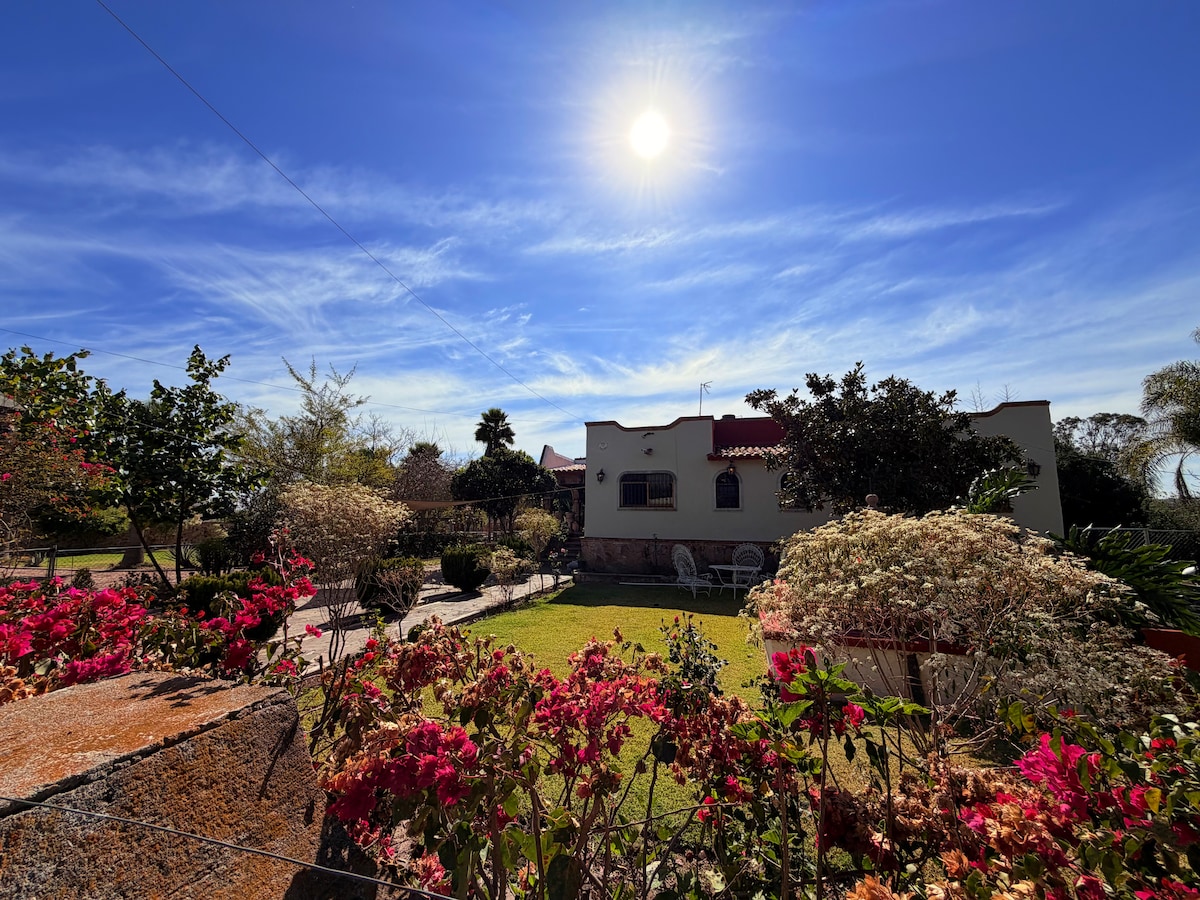 Ten una estancia placentera en familia, amigos y/o grupos a tan solo 8 km del centro histórico, cinco min del Estadio Corregidora, único y original diseño en casa de una planta, conectada con las principales avenidas de la ciudad, carretera Mex/Qro y central de autobuses, tres habitaciones, dos baños completos, cocina equipada, lavadora, un espacio de cochera, sala, comedor, patio trasero, closets, escritorio, areas verdes, plazas, supermercados y comida alrededor...quedarás encantado.