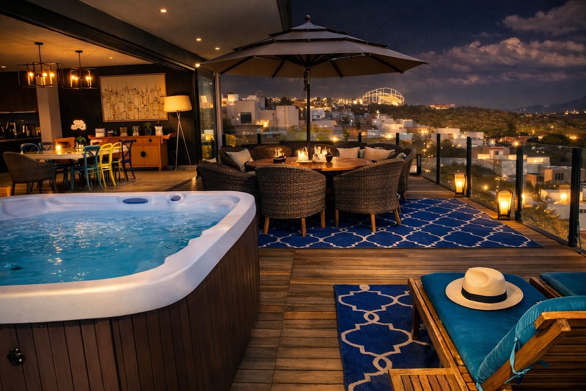 Brand-new, located in the heart of Juriquilla, this 160 m2 apartment offers a one-of-a kind experience, going above and beyond with amenities & entertainment. If you are looking for top quality, look no further and come to the most modern & luxurious apartment in Queretaro for an unforgettable stay Walking distance from Starbucks, Walmart, Bars and top restaurants like Sonora Grill & Hunger, this apartment has it all, comfortable beds, balcony, OLED 4K TVs and a 100" Home-Cinema from your bed