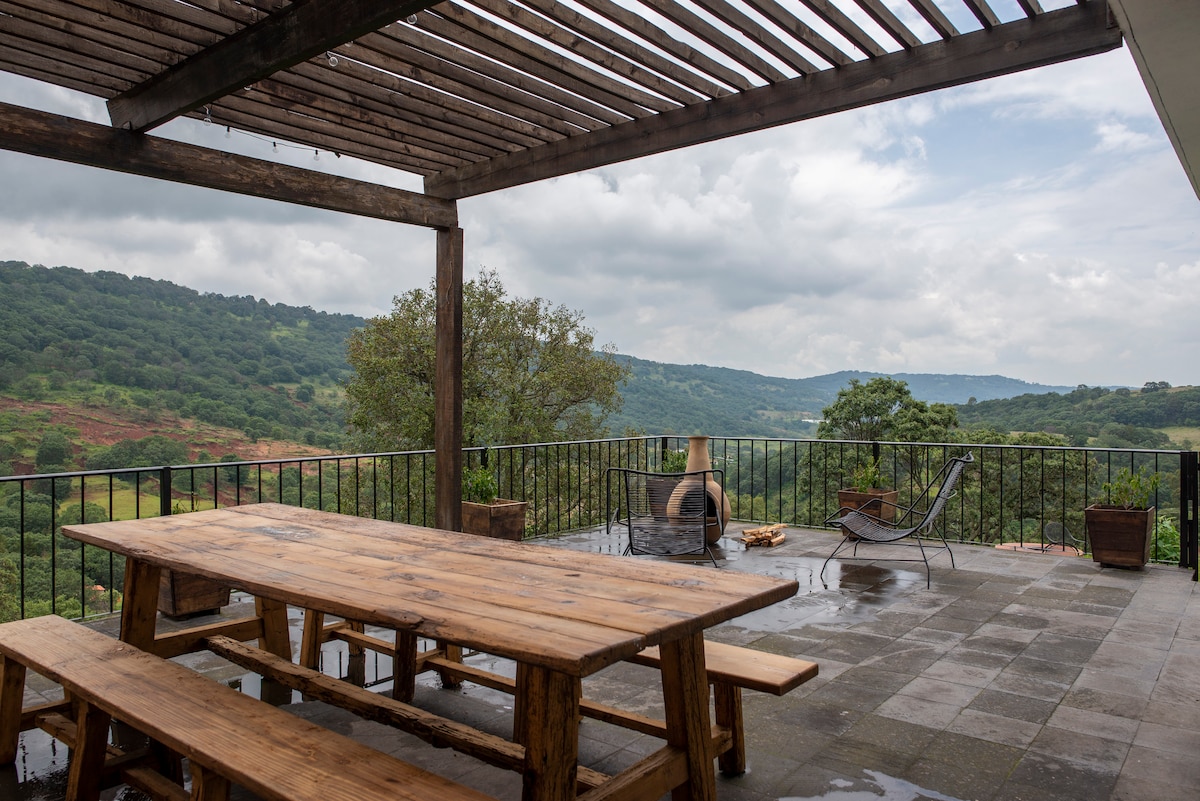 Ig/FB: @eponachalet Discover this beautiful and cozy Chalet with a unique, eclectic, bohemian and industrial decoration, surrounded by vineyards, a brewery, Bistro-bar, Pool-bar and swimming pool. Breathe: nature, peace and tranquility, in a safe tourist development, near (15 min. of La Redonda Vineyards). Visit: The magical Tequisquiapan (15 min), Bernal (30 min)... the Wine Route. Spectacular sunrises, nights of stars, hares, squirrels, birds and roadrunners. Enjoy an extraordinary place!