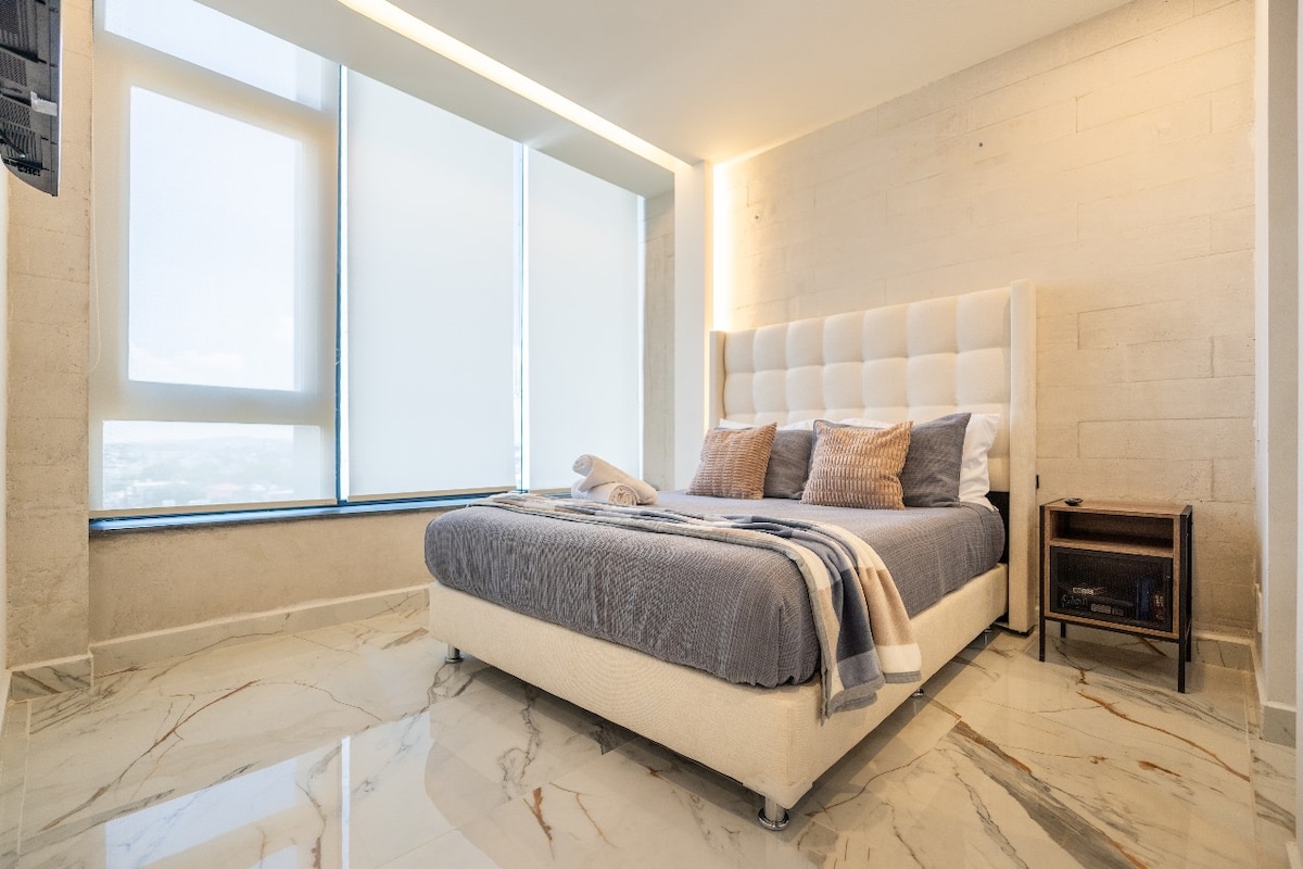 Brand-new, located in the heart of Juriquilla, this 160 m2 apartment offers a one-of-a kind experience, going above and beyond with amenities & entertainment. If you are looking for top quality, look no further and come to the most modern & luxurious apartment in Queretaro for an unforgettable stay Walking distance from Starbucks, Walmart, Bars and top restaurants like Sonora Grill & Hunger, this apartment has it all, comfortable beds, balcony, OLED 4K TVs and a 100" Home-Cinema from your bed