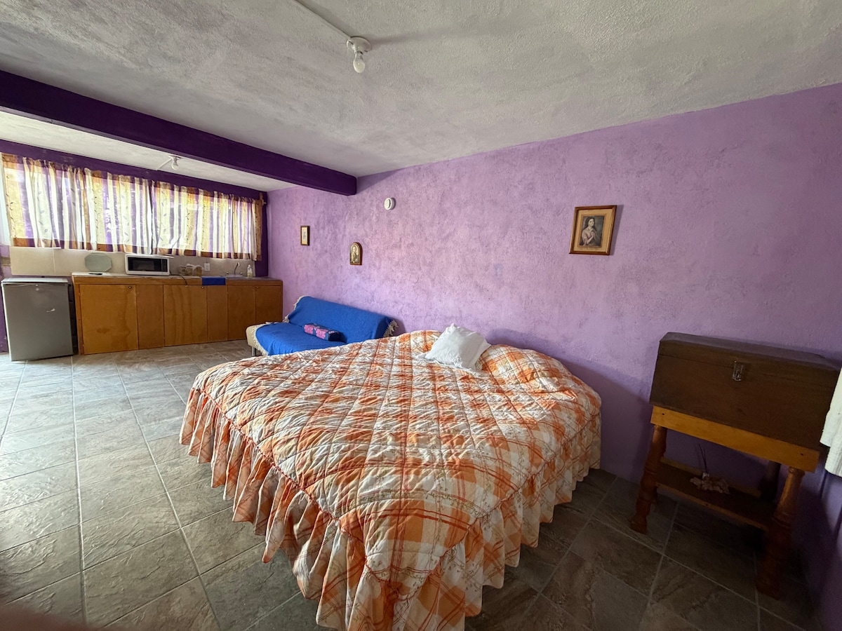 NO ES EN EL CENTRO, ESTAMOS A 2. 1 KM DE LA PLAZA PRINCIPAL DE TX Departamento independiente de la casa principal en planta alta, zona tranquila, familiar, cochera compartida, tiene lugar asignado para un auto mediano. La planta alta está adaptada sólo para huéspedes, además del departamento hay tres habitaciones con baño privado, todos los hospedajes tienen entrada privada, sólo se comparte la entrada a la propiedad y los pasillos al aire libre que son el acceso a los hospedajes.