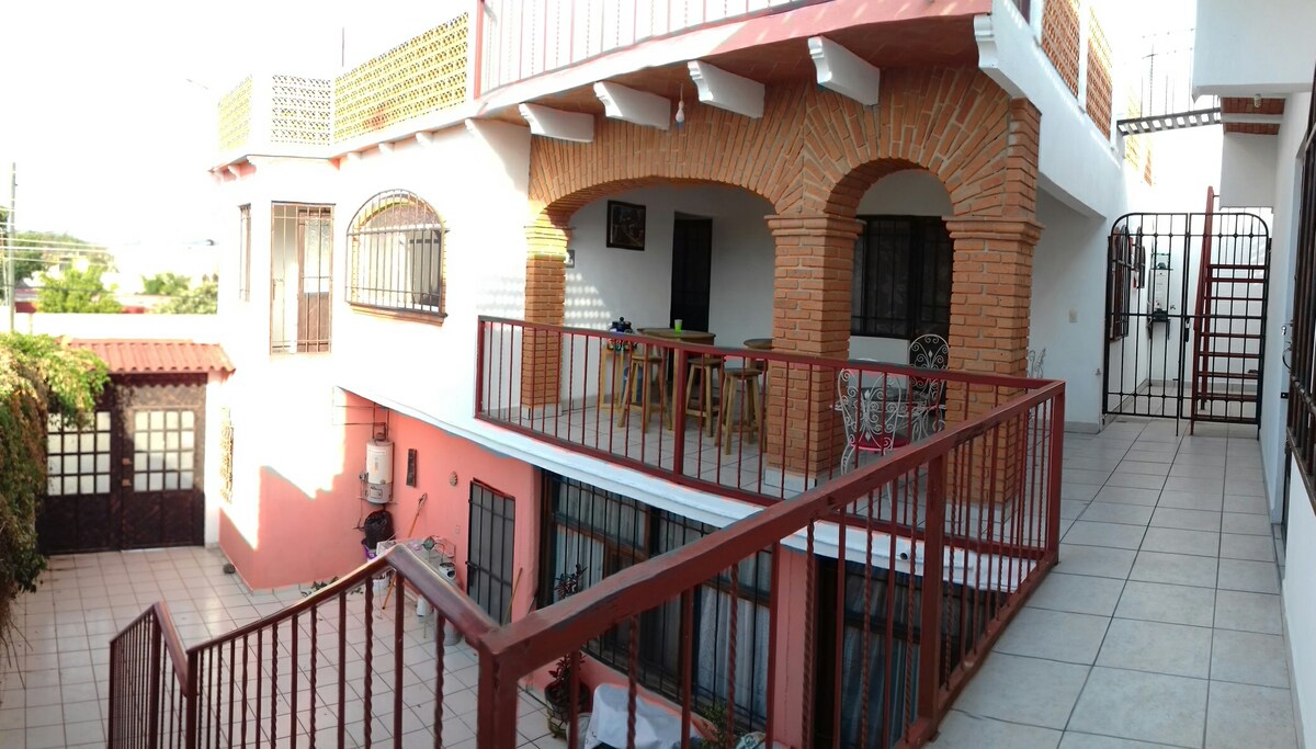 NO ES EN EL CENTRO, ESTAMOS A 2. 1 KM DE LA PLAZA PRINCIPAL DE TX Departamento independiente de la casa principal en planta alta, zona tranquila, familiar, cochera compartida, tiene lugar asignado para un auto mediano. La planta alta está adaptada sólo para huéspedes, además del departamento hay tres habitaciones con baño privado, todos los hospedajes tienen entrada privada, sólo se comparte la entrada a la propiedad y los pasillos al aire libre que son el acceso a los hospedajes.