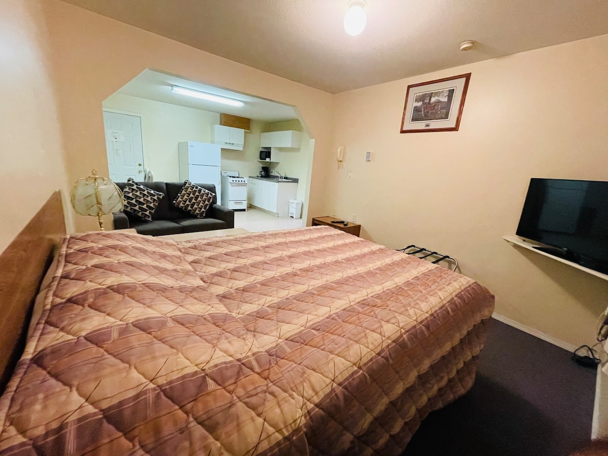 You won’t want to leave this charming, one-of-a-kind stay! 🌲 Nestled by the Fraser River in Quesnel, Fraser Bridge Inn & RV Park offers clean, cozy rooms, peaceful surroundings, and warm, family-run hospitality. Just minutes from downtown, it’s the perfect blend of nature and convenience. Pet-friendly (dogs only 🐶), stress-free, and full of heart—come relax, recharge, and feel right at home.