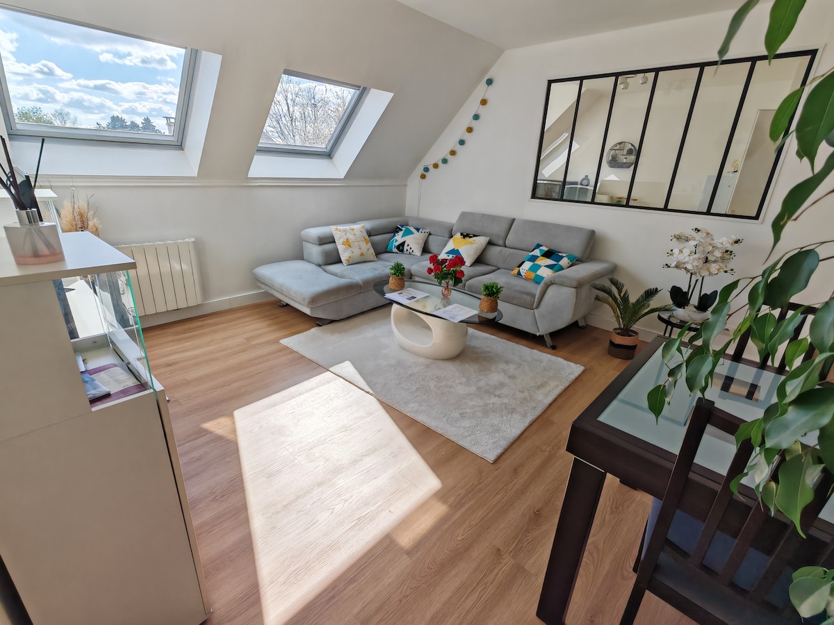 Renovated 70 m² loft on the ground floor with a private 25 m² terrace, located 600 m from the city center. Fully equipped kitchen (dishwasher, oven, microwave, bean-to-cup coffee machine – coffee provided, washing machine, drying rack). High-quality materials: oak flooring, Burgundy stone, granite worktop. Large Smart TV, 160 cm bed, 180 cm walk-in shower. Bed linen, towels, shower gel and toilet paper provided.