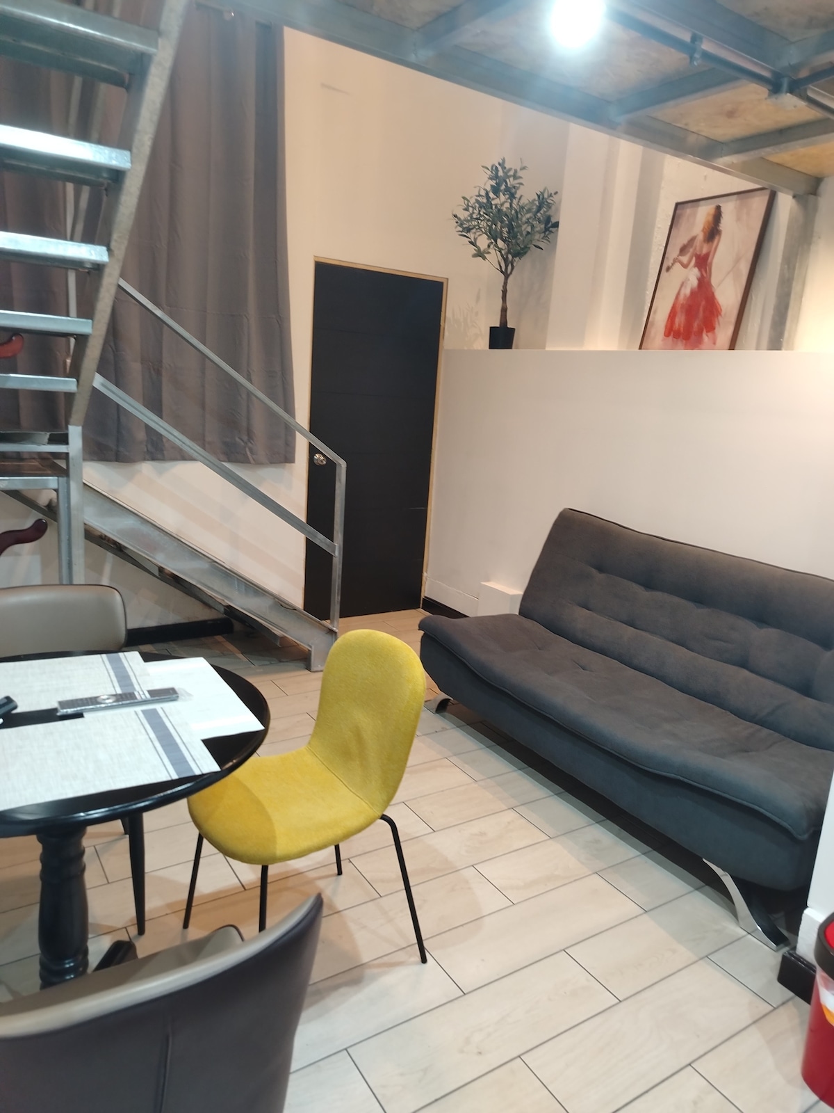 This charming apartment, with a London theme, is just 7 blocks from Central Park, offering a perfect base to explore the city. It features a small but comfortable bedroom with a double bed and a closet. The bathroom has an electical shower with hot water. There is a kitchen with a fridge, oven, and cooktop and free coffee and tea. The living area has a TV with Disney+ Premium. There is 40MB Wi-Fi and a small studio with a desk. Please note, there is no parking available.
