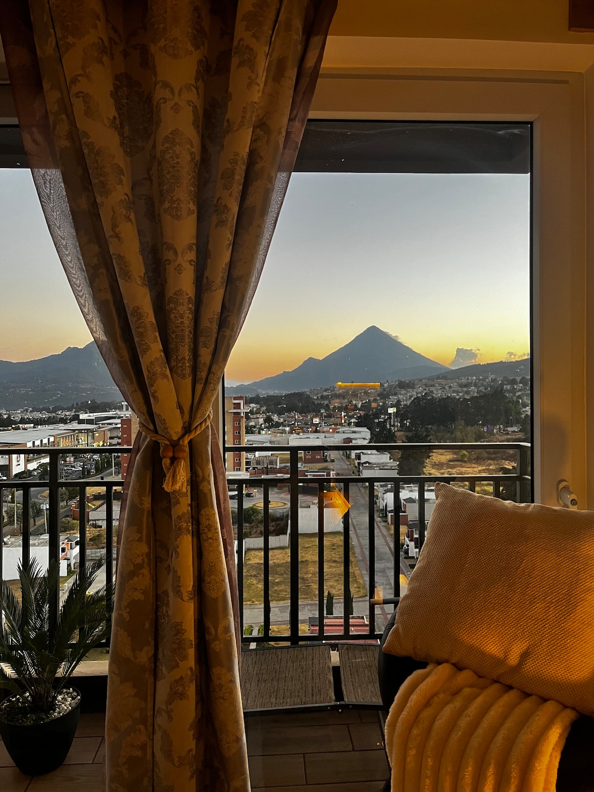 Disfruta de una experiencia con estilo en este alojamiento céntrico, en una zona privilegiada de Xela. Cerca de interplaza, maycom, renap, UMG, colegios y todas las comodidades que ofrece el edificio, ubicado en el penthouse de un edificio de lujo con la mejor vista hacia el volcán! Experiencia inolvidable para disfrutar un descanso rico y acogedor con familia o amigos. Almohadas ergonómicas en ambas habitaciones, suficiente ropa de cama, 1 TV con cable en cada habitación y TV S-Mart en sala.