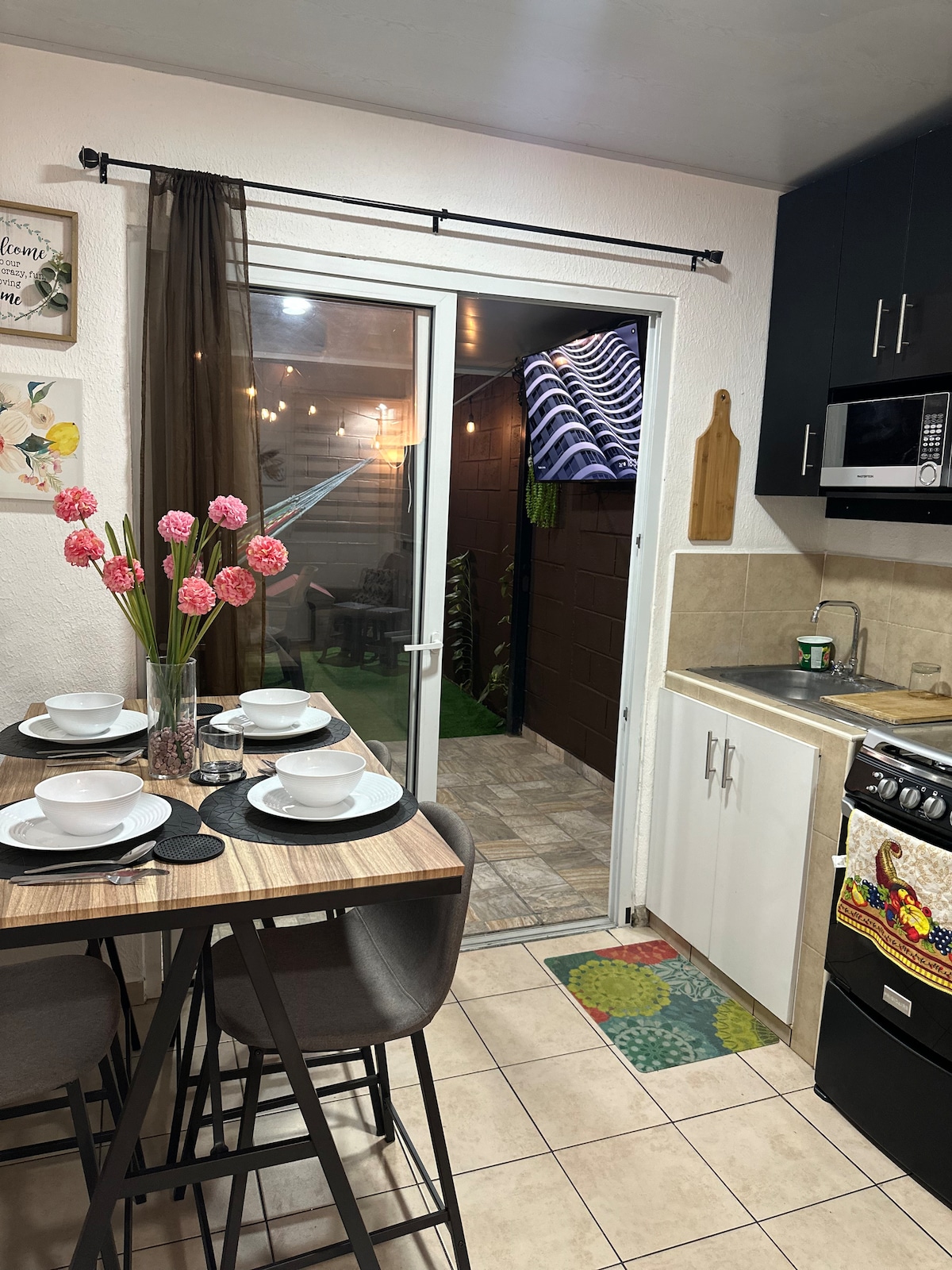 Disfruta de una estancia relajante en esta bella casa de 2 habitaciones, ideal para quienes buscan tranquilidad y confort. Ubicada en un entorno tranquilo, ofrece una linda área verde perfecta para descansar al aire y disfrutar de paz y privacidad. Cuenta con parqueo privado, AC para mantener la temperatura perfecta, cocina completamente equipada, lista para preparar tus platillos favoritos y un baño moderno y funcional. Para estadías cortas o largas, esta es tu mejor opción. ¡Te esperamos!