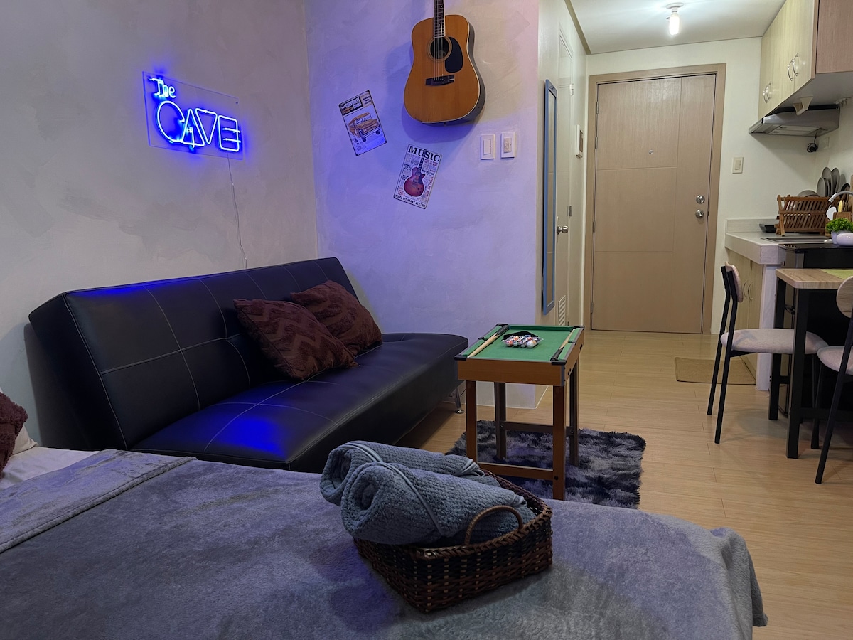 Escape to the intimate serenity of Skyloft at SMDC Trees Residences, a carefully curated urban haven. Experience a well-deserved retreat in this elegantly designed studio suite. The unique and aesthetic decor, complete with a bar counter, a game console, and a loft bed beside a panoramic window, provides the perfect setting for uninterrupted stargazing. Reconnect with your partner or share this tranquil haven with a dear friend. Book now and make memories! ♥️🌥️