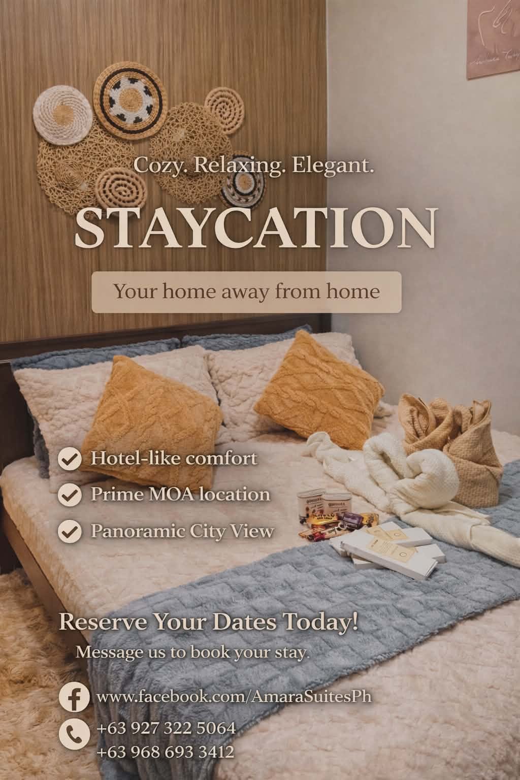 Welcome to The Fave Staycation! 🏡🍃 Just a 5-min walk from SM Mall of Asia, this cozy 1BR condo with a pool-view balcony is your home away from home. Perfect for couples, solo travelers, or groups of up to 4, the unit is fully furnished with stylish interiors and thoughtful amenities. Whether you're on a short break or a longer stay, enjoy a peaceful, resort-style escape in the heart of the city. Relax, unwind, and make yourself at home! ✨