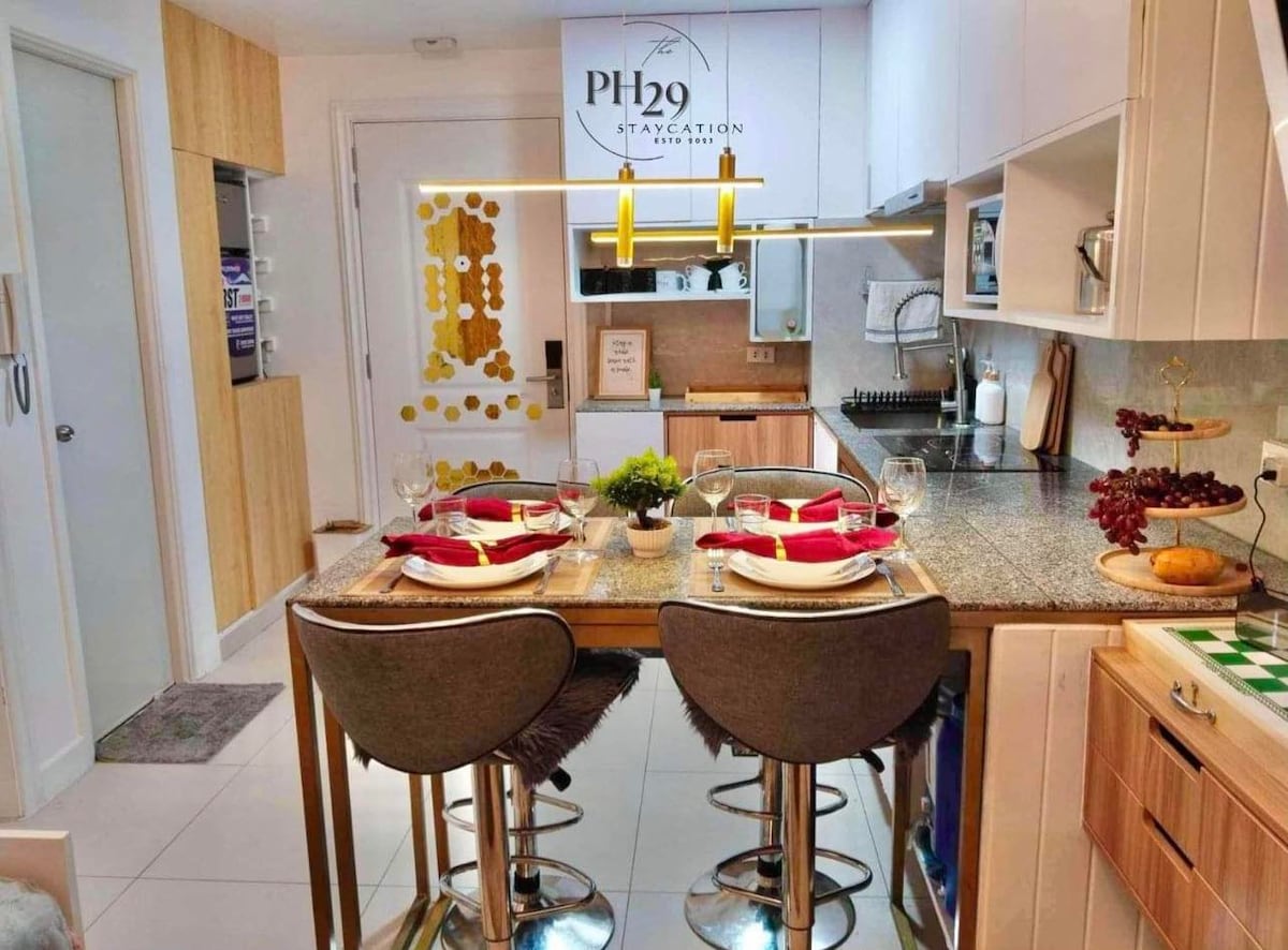 Welcome to our stunning condominium unit with a home theater theme designed 🎥🎬 🍿 FREE POPCORN! 🍿 🏖️ Room Features: ✅ Cinematic experience using projector with built in apps like Netflix, Youtube, etc. ✅ Air conditioned Room ✅ Stand Fan ✅ Double Size Bed ✅ Sofa-bed ✅ Board and Card games ✅ Microphone for videoke ✅ Refrigerator ✅ Microwave ✅ Hot & Cold Shower ✅ Towels ✅ Amenity Guest Kit ✅ Electric Kettle ✅ Kitchen Utensils ✅ Iron for clothes ✅ Free Wifi Enjoy your stay! 💓