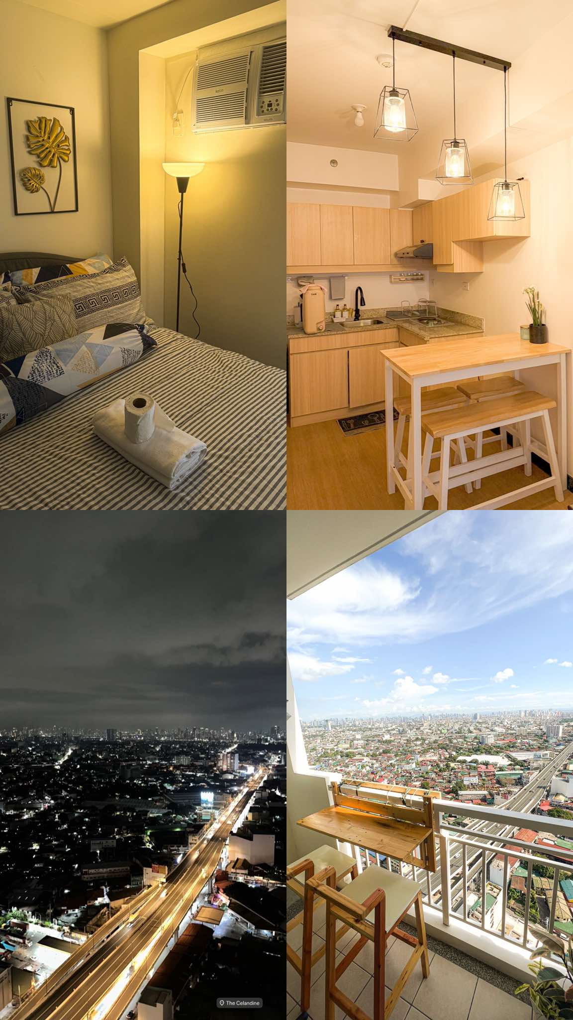 The Hideaway Den Chill out. Relax. Unwind. A Japandi inspired Hideaway Place in the middle of the city perfect for family, friends and loved ones. This 2Br End Unit with balconies have the following features: - Overlooking balconies facing the Aurora Boulevard and Quezon City Skyline and the other one facing Cubao Skyline - Loftbed with Hammock Bed on its side - Fully airconditioned including living room - With Unlimited Wifi and Netflix Premium - With Complimentaries