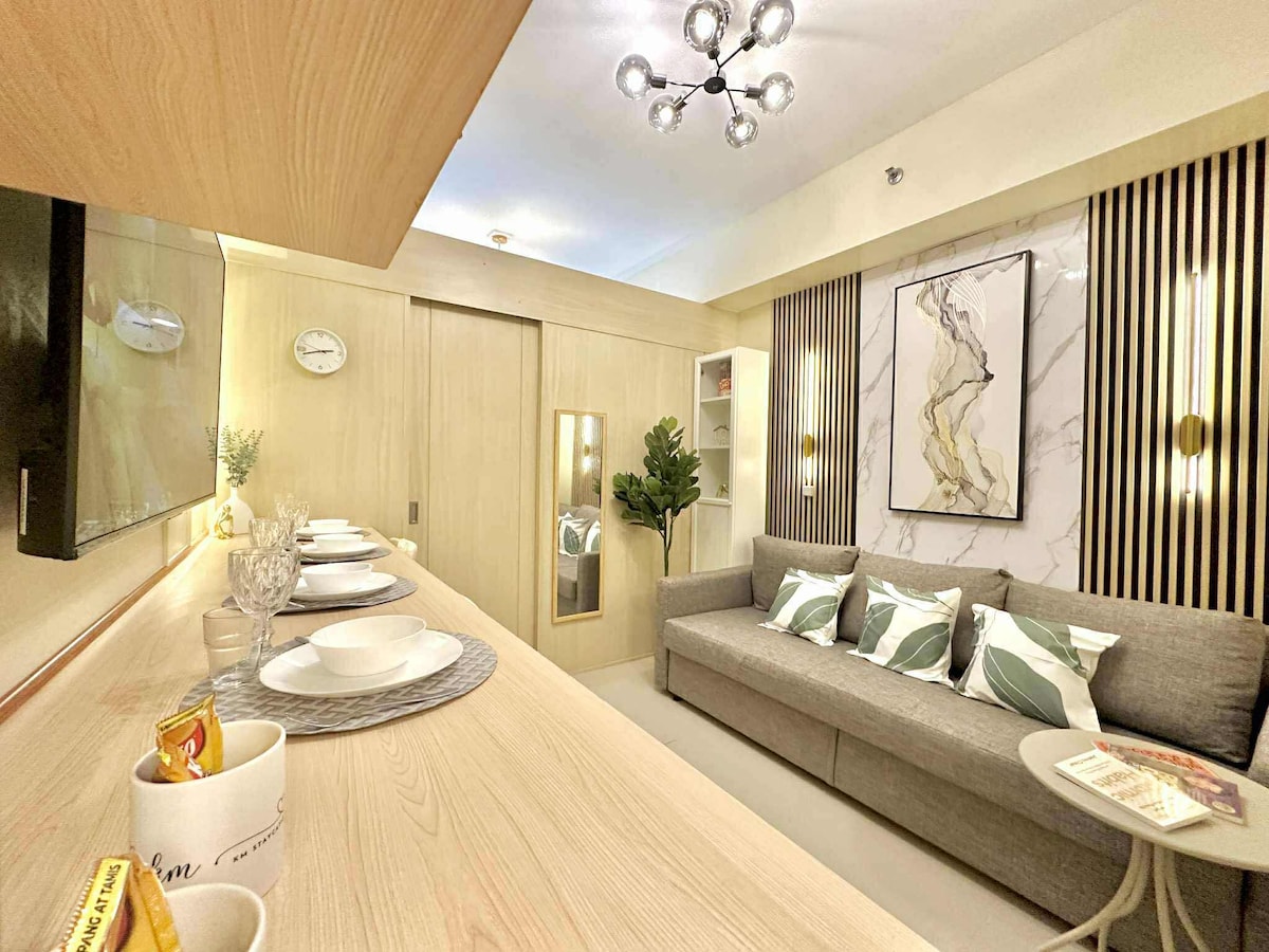 Discover our spacious and bright 1BR end unit with balcony in the newly built Tower 4, Fern Residences. Designed with you in mind, our luxurious boutique-hotel style unit features a fully-equipped kitchen, hotel quality mattress and beddings, convertible coffee to dining table, washing machine and fast WiFi. It is ideal for short and extended stay travellers and for those who just want to have a relaxing staycation.