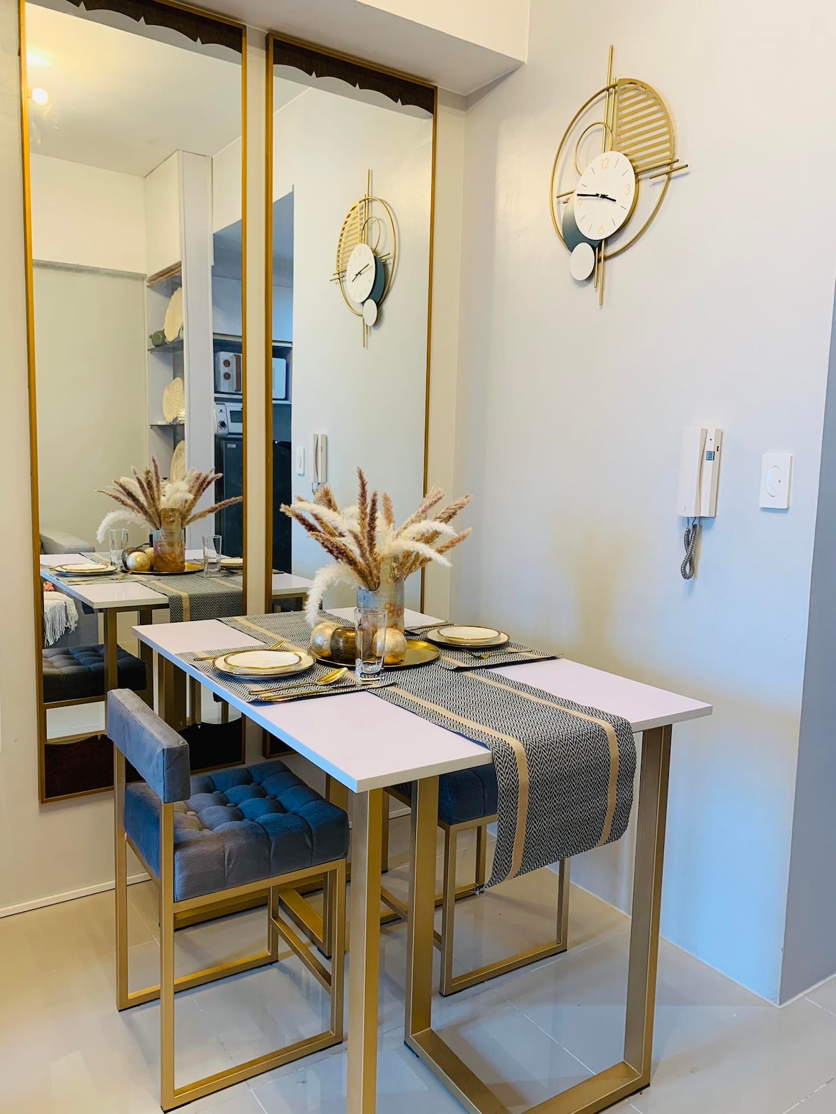 Welcome to our airy contemporary and Mediterranean-inspired Tahanan, a 25 sqm studio unit in Mandaluyong, just a short walk from Rockwell and Powerplant Mall! We’ve designed our space to provide a comfortable stay while capturing stunning sunset views, as well as views of Mandaluyong and Makati from our balcony. Whether you’re visiting for work, leisure, or a mix of both, our well-equipped Airbnb is the perfect base for exploring the vibrant cities of Mandaluyong and Makati.