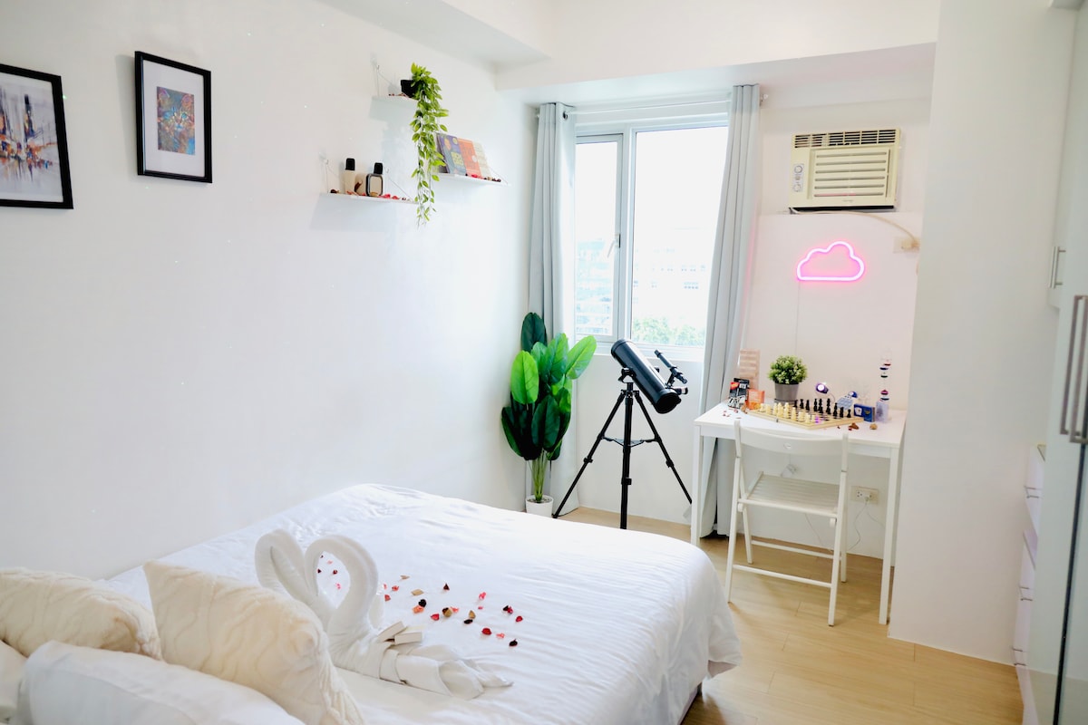 Imagine your 5 minute walk home from a concert at Araneta Coliseum or New Frontier Theatre. Art in Island, Bellini's, Habanero Cubao Expo are definitely walkable distance from the condo. Get your seafood fix at Dampa after a swim in the pool or shopping at Gateway Mall. Equipped with both task and mood lighting, the unit is great for work from home and staycations. The stay includes same building access to parking, pool, gym, billiard table, jogging trail, basketball court and 24/7 security.