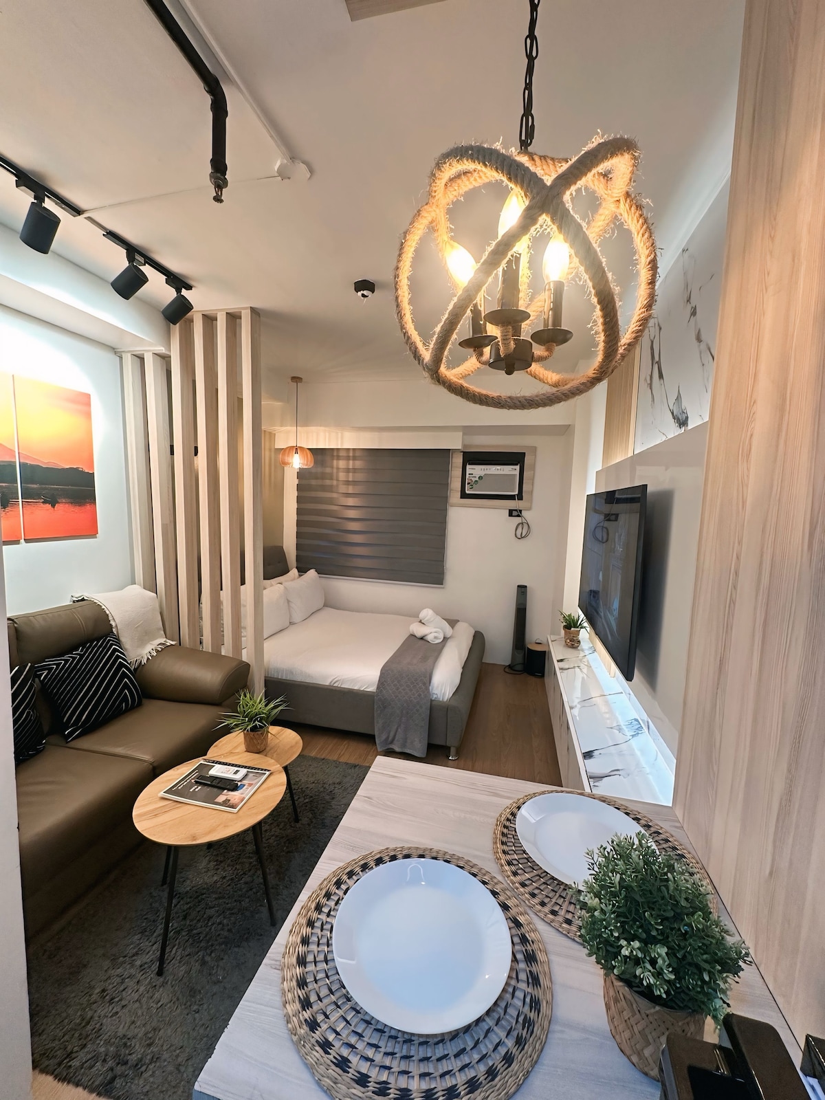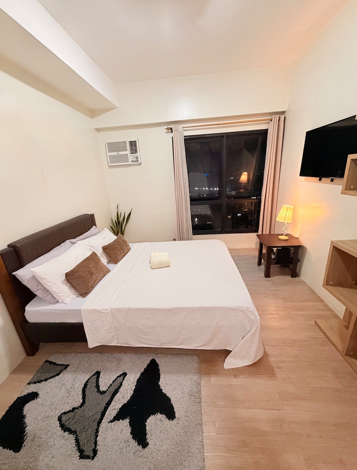 Welcome to Your Suite Escape—nestled right in the vibrant entertainment hub of Tomas Morato, Quezon City! Explore trendy cafés, indulge in local dining, or simply unwind after a long day with cozy movie nights on Disney+ and Netflix right in the comfort of your suite. Enjoy a thoughtfully designed studio with warm interiors, natural light, and hotel-style comforts. If this place is booked on your date, check out our other themed spot at airbnb.com/h/your-suite-escape-the-26th-at-tomas-morato