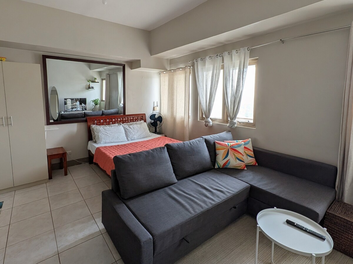 Welcome to this cozy studio unit in Quezon City, your perfect retreat! The space features a comfortable double-size bed, a 55-inch smart TV with Netflix, Disney+, and HBO Go, paired with a recliner sofa, a compact yet fully equipped kitchenette, and a stylish living area perfect for unwinding after a day of exploring. With cafes, restaurants, and attractions just steps away, whether you're here for business or leisure, this studio promises a delightful stay in the heart of the city.