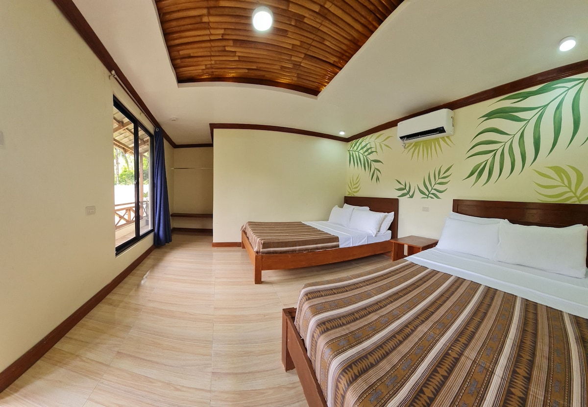 BASIC but COMFY. Limited wireless internet connection is available at the front desk area. You can read a book, enjoy nature, or practice your communication skills. #goodtobeunpluggedonceinawhile A 24 sqm room with 2 double-sized bed. Our place is perfect for people seeking relaxation and quiet time. - air conditioned room - cable TV - with own toilet & bath, heated shower - bathroom amenities - set breakfast - swimming pool access