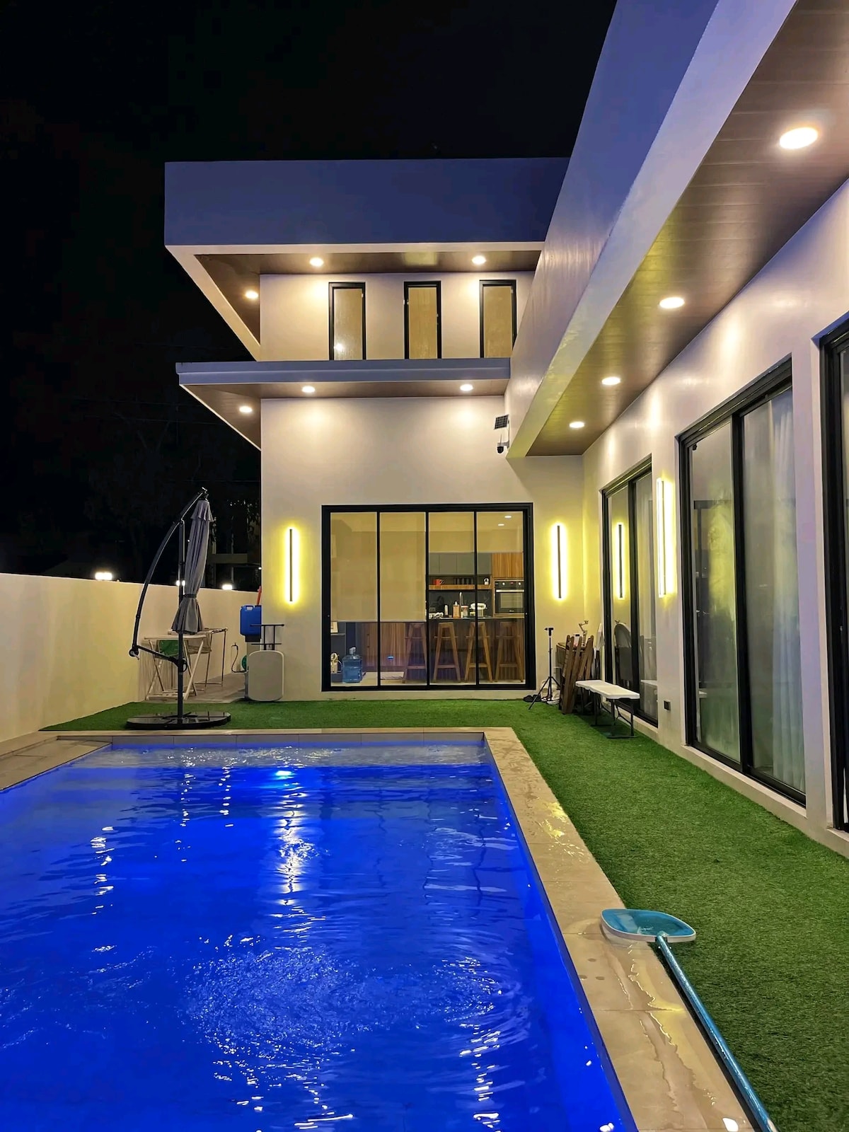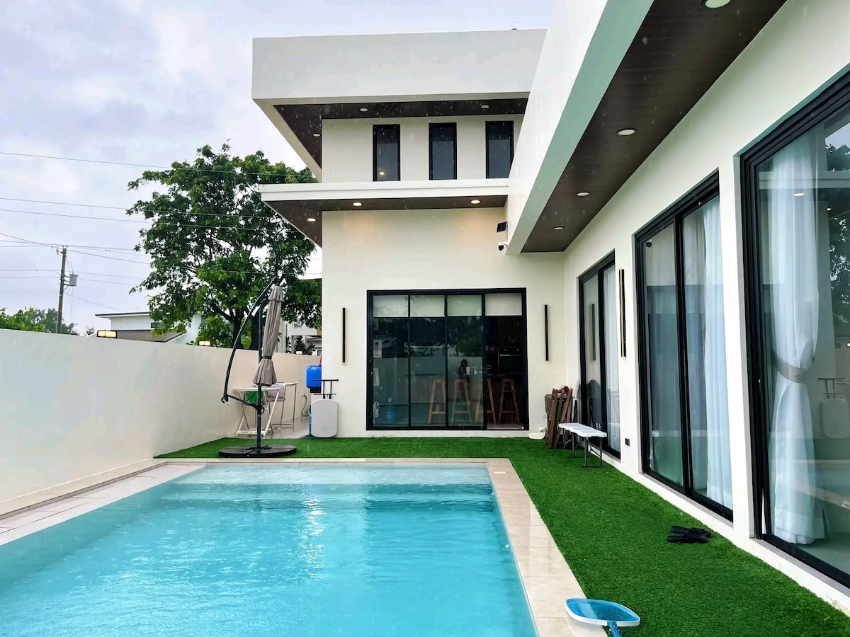 Relax with the whole family or barkada at this peaceful place to stay for vacation. Located at Sariaya Quezon. - Good for 12 person at two fully air conditioned bedrooms. - A Living room with karaoke (Air conditioned). - With parking lot (Can accommodate 3 cars). - With WiFi. - Mini Swimming Pool. - With terrace overlooking Mt. Banahaw. - 2 comfort room with bidet, and a shower with heater. - Free use of personal refrigerator, kitchen tools and devices, and washing machine. - BBQ grills