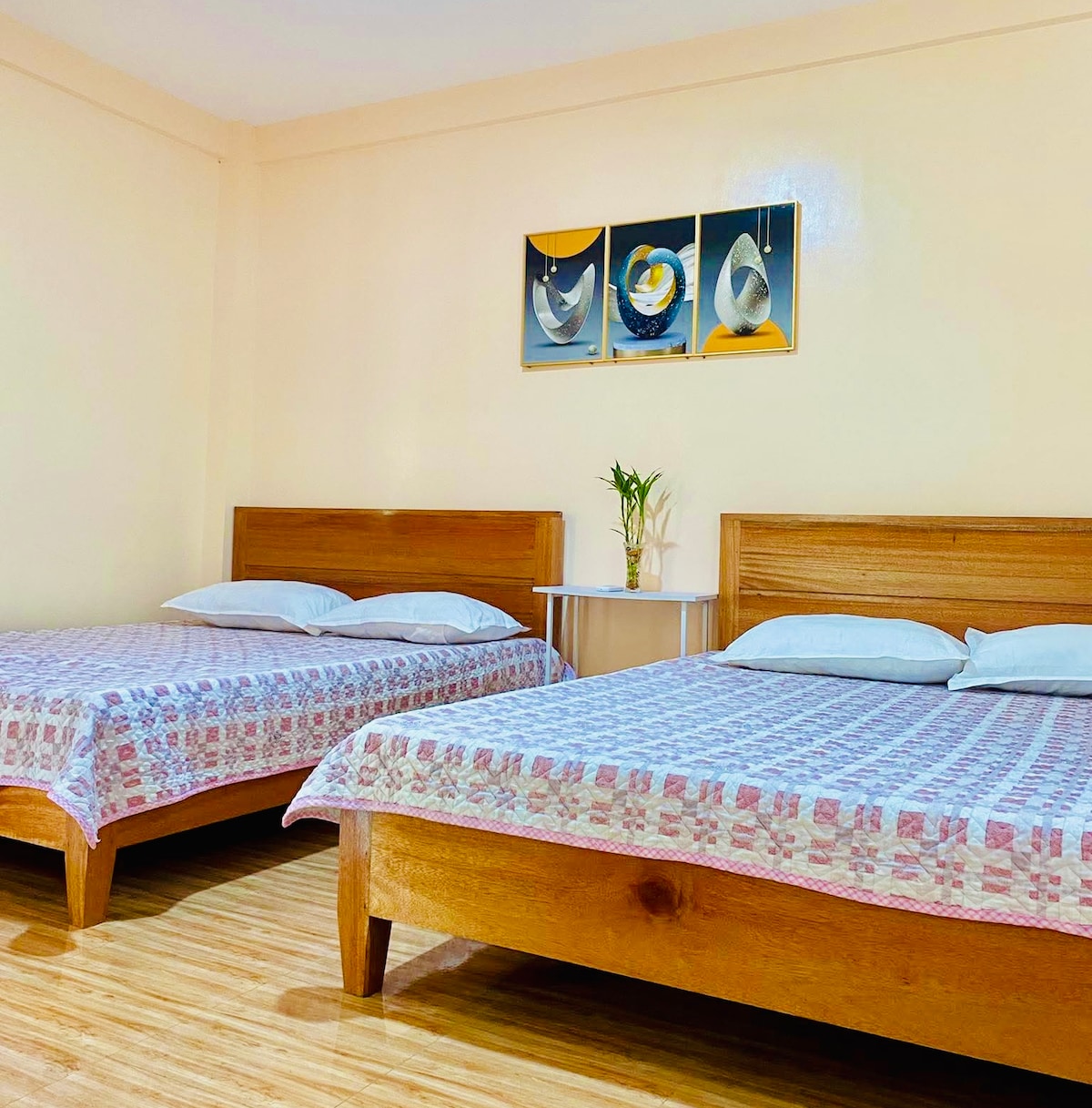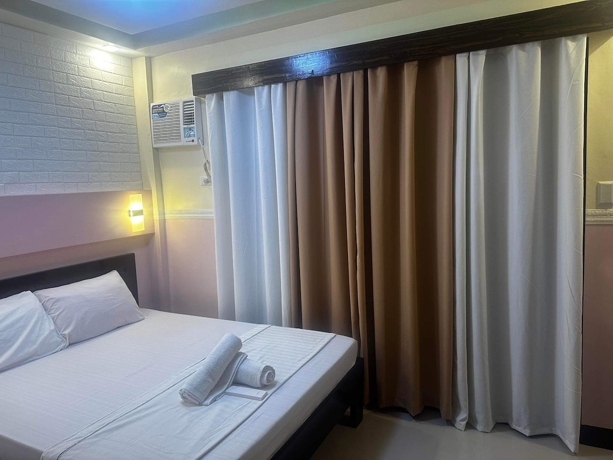The studio queen is a comfy, non-smoking 26 sq. m space with a queen-sized bed, hot and cold shower. The Roof Deck, located at the 6th floor, is a designated smoking area available for smokers and vape users. WiFi is provided all throughout each floor and including the Roof Deck. Guests can enjoy working or relaxing at the Roof Deck with a view of Mt. Banahaw. For people bringing their devices, electrical outlets are also available at the Roof Deck.