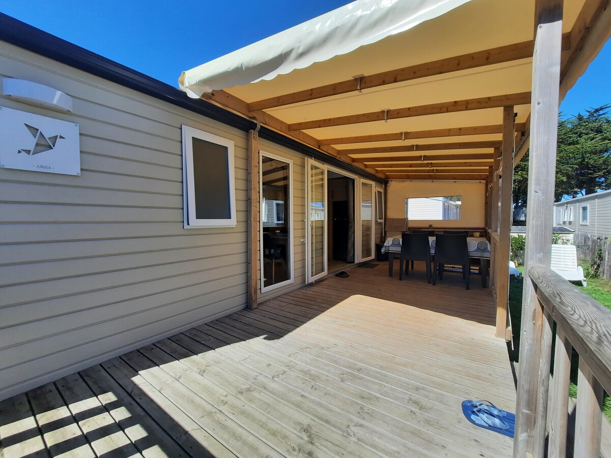 Notre MH " La Costa Breizha " vous attend afin de vous offrir des vacances inoubliables au camping Le conguel 4*. D'une superficie de 40 m², il se compose d'1 grande pièce à vivre ouverte sur la terrasse, avec vue sur l'océan au loin, d'1 large cuisine fonctionnelle équipée, avec vue sur les prés, d'1 salon avec grand canapé, 3 chambres dont une suite parentale, 2 salles d'eau et 2 wc. Terrasse de 7m50 de long, couverte sur 4m50 Grande plage en face. Calme garanti. Un endroit pour se ressourcer