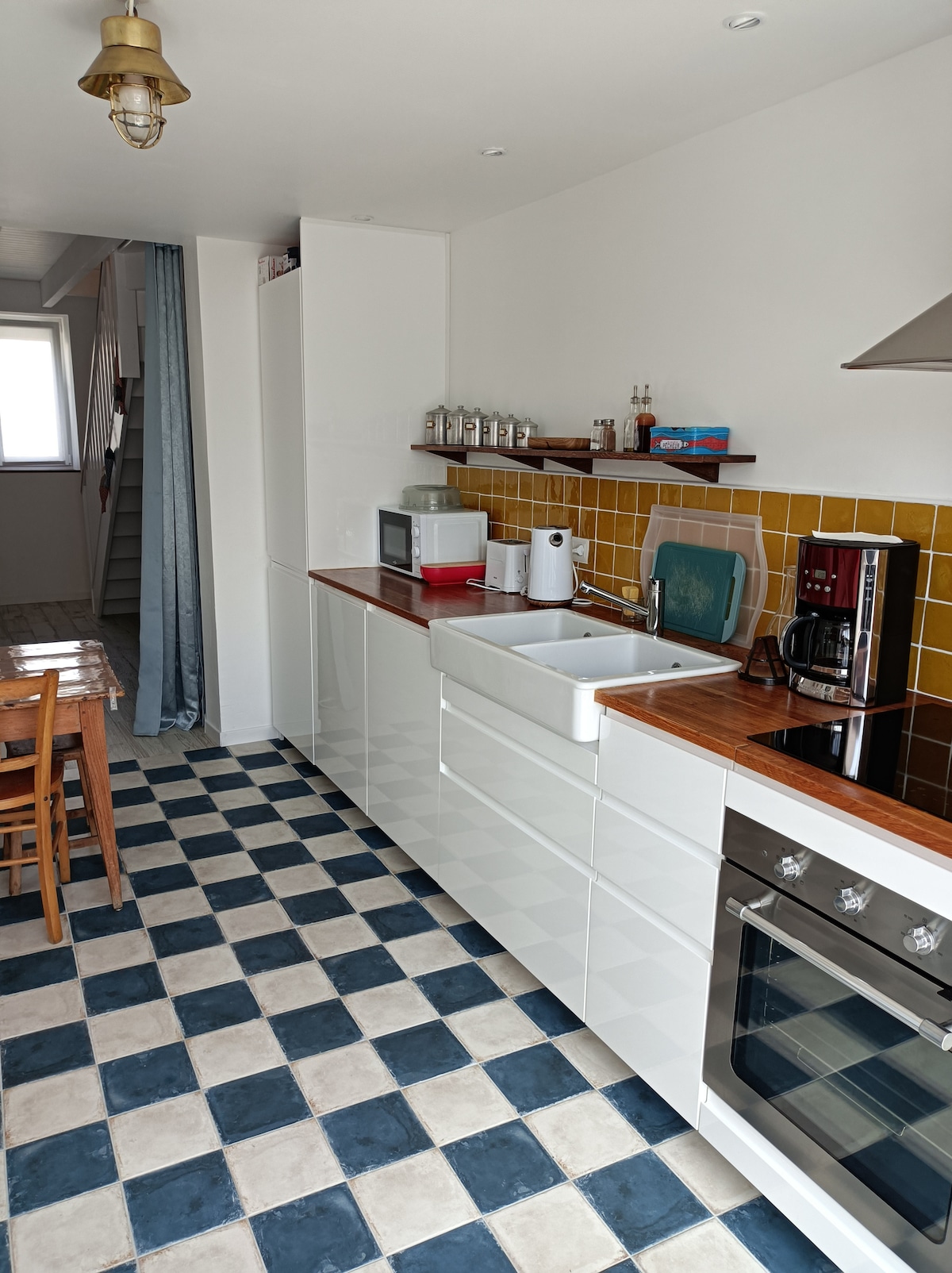 Maison dans une impasse, à 200m de la plage et 800m du bourg. Grande pièce de vie très lumineuse donnant sur la terrasse. Cuisine équipée : lave-vaisselle, micro-ondes, four, plaques. 2 salles de bains avec douche, 2WC. 4 belles chambres. Barbecue, transat, salon de jardin. Vélos à disposition (2 adultes, 2 enfants) Draps et serviette non fournis.