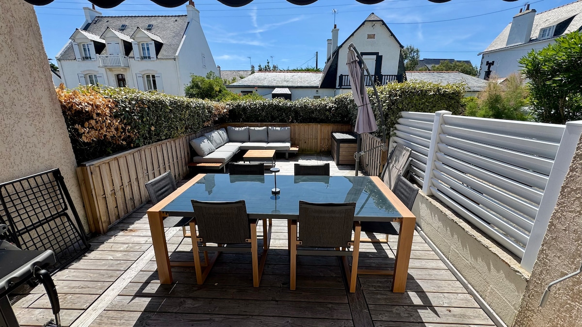 Notre Nid de centre ville est parfait pour passer de chaleureuses vacances en famille. Il vous offre 2 Chambres et une petite chambre avec des lits superposés, 2 salles d’eau, le tout décoré avec goût pour s’y sentir bien. Elle peut accueillir au maximum 4 adultes et deux enfants. Nous nous situons à seulement quelques mètres de la place Hoche et de la Grande Plage. Le jardin de 50m2 est sécurisé pour les enfants. La Maison est équipée du WIFI et dispose d'une place de parking gratuite.