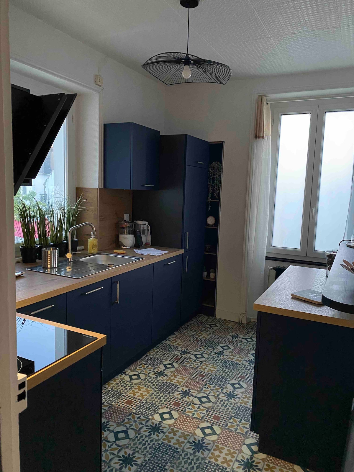 Jolie maison de ville rénovée et décorée avec goût, au calme dans une impasse à proximité des commodités. 1 chambre au 1er étage avec un lit de 160 et canapé lit 2 couchages (140) dans la pièce de vie. Cuisine équipée d'une plaque avec hotte, réfrigérateur et congélateur,d'un micro onde et d'une cafetière (filtre). Ilot pour les repas et ses 4 chaises de bars. Grand téléviseur dans la pièce de vie. Salle de bain double vasque et douche à l'italienne. WC séparé. Aspirateur, fer à repasser. Wifi