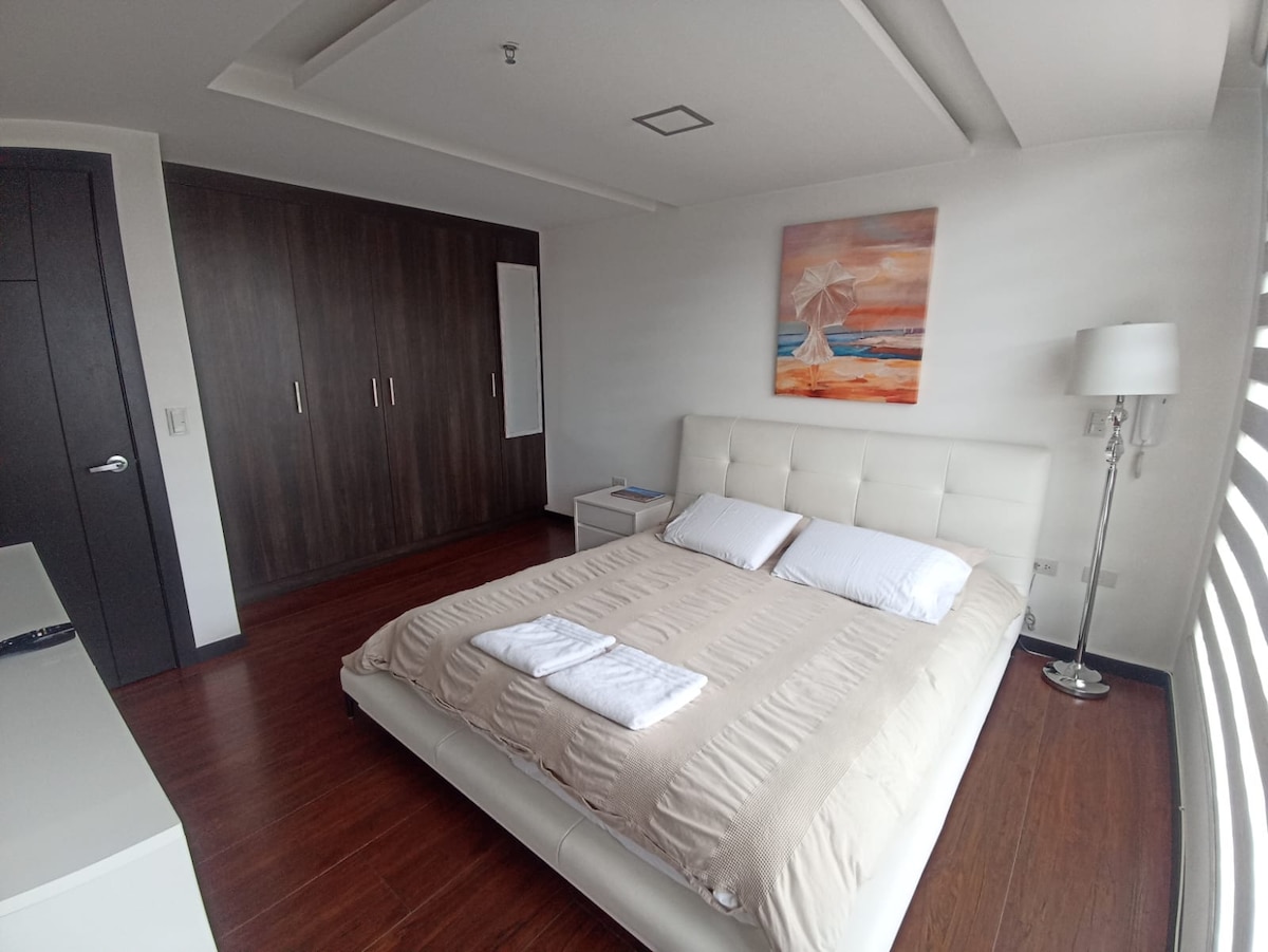 Rating 4.99 ⭐⭐⭐⭐ - Top 5 best-rated in all of Quito. Electric generator ⚡ and we issue invoices!! Very cozy 😊, bright, fully equipped, and super well located. You won’t share it with anyone else! Located in the north-central area of Quito, 1 block from La Carolina Park, El Jardín Mall 🛍️, the Chamber of Commerce, and the Metro 🚇. Close to Quicentro and CCI Mall. Banks 🏦 and restaurants on a quiet street. Flexible check-in ⏰. Gym 🏋️, co-working 💻, game room 🎲, BBQ 🍖& jacuzzi 🛁