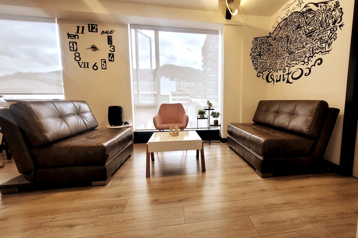 Desde este alojamiento céntrico todo el grupo podrá disfrutar del fácil acceso a todo. Cerca del parque la Carolina,Quicentro,estadio Olímpico Atahualpa,Supercines,Megamaxi A pasos de café Valdez,mono bolon,farmacias,restaurantes,bares,peluquerías tiendas de ropa de marca,notarías,juzgados y más lugares de interés común y exclusivos