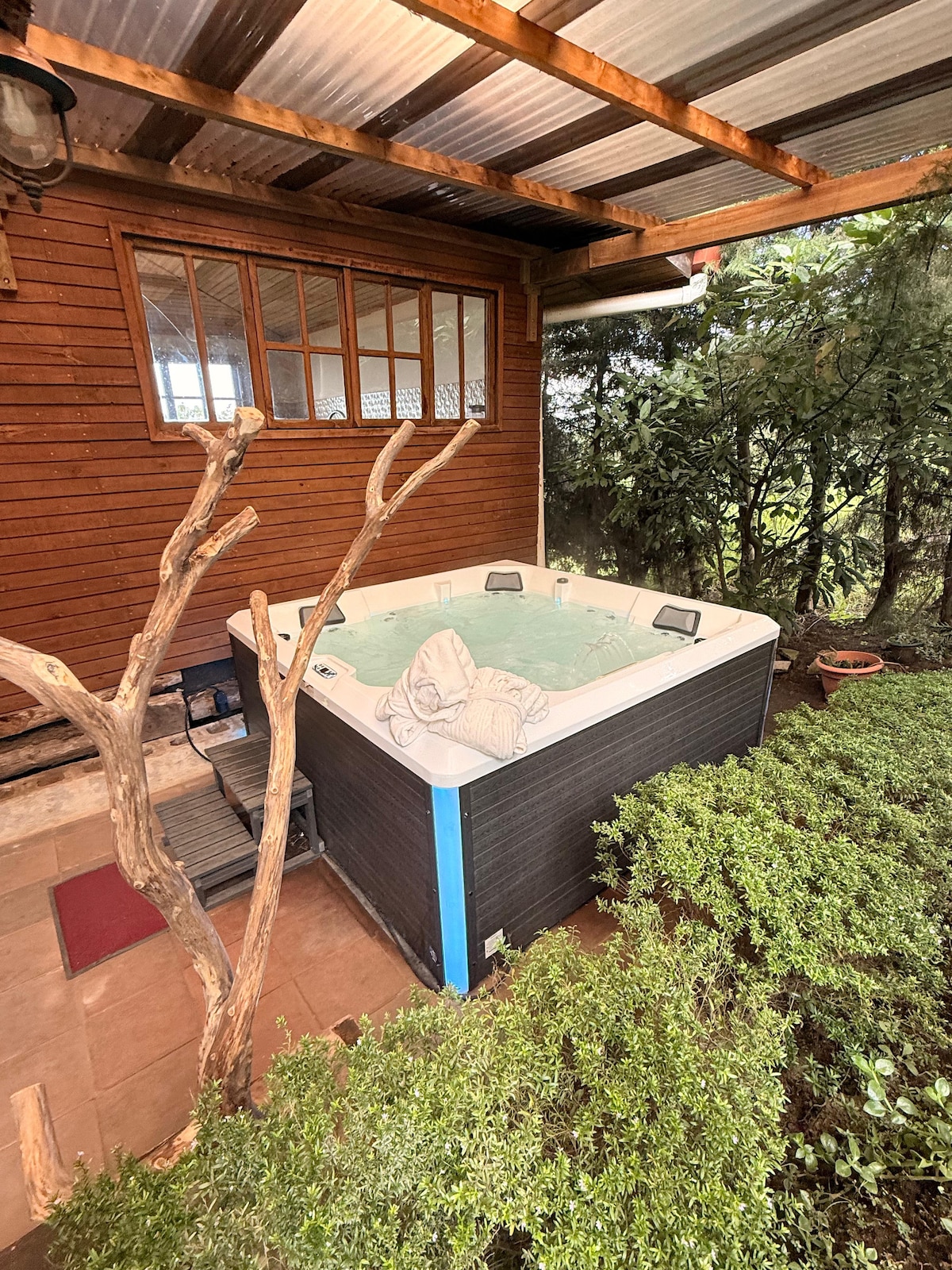 Tecpán森林小屋中的按摩浴缸,带火坑