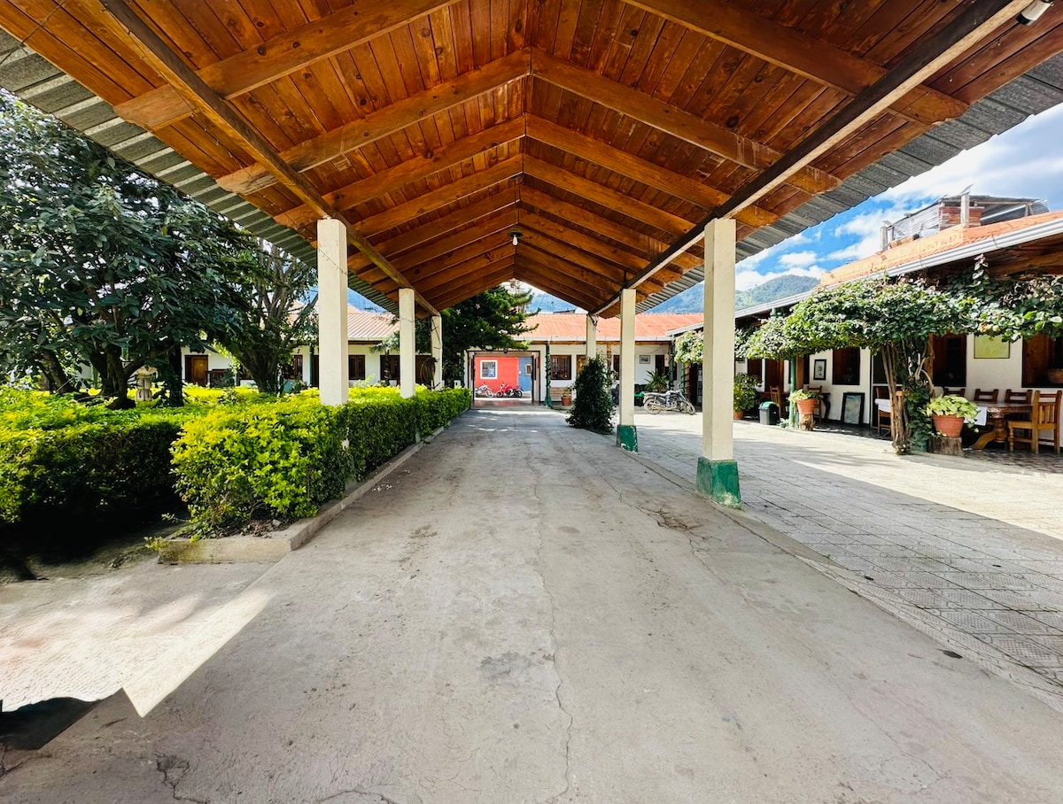 Tenemos el gusto de ofrecerles habitaciones confortables con baño privado, en un ambiente familiar cómodo y seguro con parqueo interno. Hay servicios de sauna tipo temazcal ( con leña y eucalipto), masajes de diferentes tiempos. Ven a respirar aire puro, ideal para el descanso rodeado de naturaleza y lindos paisajes, contamos en sus alrededores con una amplia gastronomía Nacional e Internacional, también estamos a 10 minutos del parque arqueológico de IXINCHE y 45 minutos del lago de Atitlan
