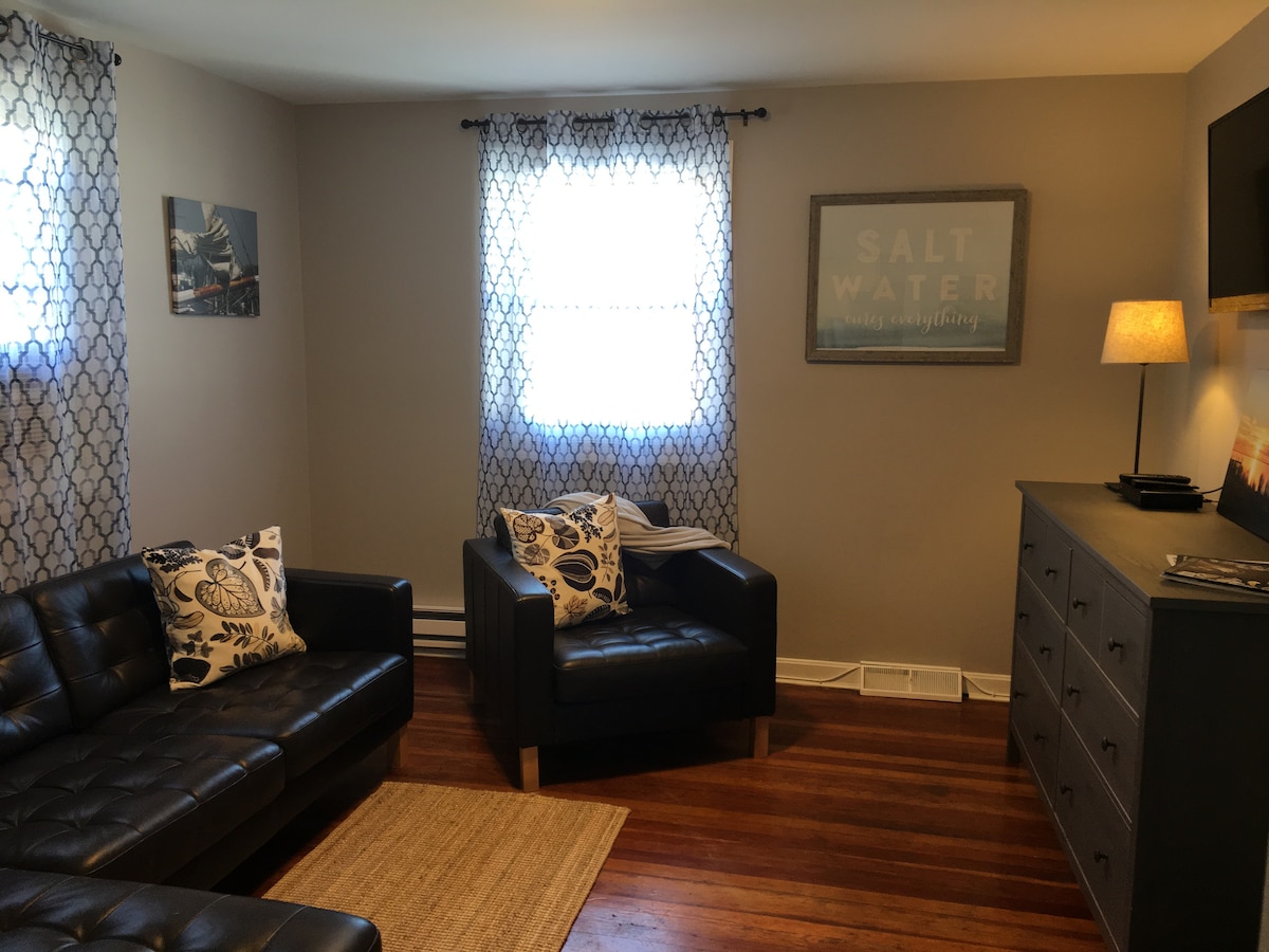 This apartment is on one end of a larger main house. The shared wall was retro-fit with sound dampening cellulose fill in February of 2018. This enhancement along with many others provide the feel and comfort of being in your own space. This is Listed as 2 bedrooms, however there is no door between the 2 rooms. They are separated by 3 steps and a hallway. Please see pictures for a thorough view of the layout. Proximity to destinations; Vin 909 0.2 miles, Boatyard Bar & Grill 0.3, Eastport bridge, gateway to the downtown area 0.7 miles, City Dock 1.1 miles, Naval Academy 1.2 miles There is a Murphy Queen cabinet Bed, plus a Leather couch that turns into a queen bed allowing 4 to sleep comfortably, 2 to a bed. Very calm and relaxed space, a great place to recharge as you discover the area. Of Note: Hotel cleanliness standards vary greatly; with comforters frequently being a little dubious. Just how many turnovers are factored in before they get washed? High traffic carpeted floors can hide unwanted history. Walking in your bare feet should only make you feel free, never uneasy. Our pledge; every guest will sleep on clean sheets, over a freshly sanitized mattress cover under a bed comforter or bed blanket that was cleaned before their visit. When shams are present, they are laundered every single time. All surfaces are cleaned and if something’s not right, let us know and it will be. Life can be a mystery, but your Airbnb stay should never be. Shared Use of the Front porch to the right of the house. Wifi, (2) 4K TV's one 48" and the other is 60", industrial under counter fridge that will keep everything nice and cold. Dishes, glasses plates are all available. The (2 ) Roku TV remotes have inputs for standard ear buds, so you can stay up way late and watch TV while not waking up your friend/spouse/relative, buddy, just plug in... I'm kind of a non-intrusive, sort of do my own thing sort of person. Very mindful not to step on other peoples good times. Available through text to answer any questions you may have. I've lived in the area most of my adult life and am always happy to help. The house is in the eclectically odd neighborhood of Eastport. It's close to great restaurants, bars, and pubs. Vin 909 Winecafe is less than a five-minute walk from the house, and it's across the street from three more restaurants and a drug store. Walk it man, walk it! it's good for you and what's the rush. Driving downtown can be painful and crowded. Plus why pay the man to park, when you've got free parking at the house? Proximity to destinations; Vin 909 0.2 miles, Boatyard Bar & Grill 0.3, Eastport bridge, gateway to the downtown area 0.7 miles, City Dock 1.1 miles, Naval Academy 1.2 miles The house is on a main road to downtown. So there is a fair amount of traffic in front of the house. There is also a fire station just down the road, so passing sirens often accompany the din of general city traffic. For your comfort there is a white noise machine in the front bedroom area. There is also a small fan in the closet if you prefer to sleep with a fan. Please use caution when pulling out of the drive way. When walking downtown, the side streets are much quieter, so pick the path that best suits you.