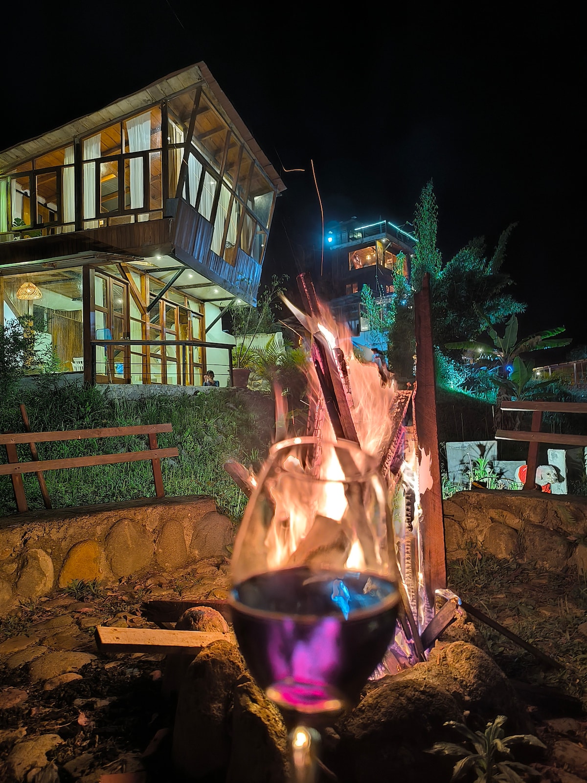 Una cabaña ideal para compartir con grandes grupos familiares y amigos. Sus extensos ventanales permiten mirar las montañas y la neblina desde cualquier lugar de su interior. No hay luz eléctrica, se ilumina con luz de velas, velones y lámparas de panel solar, lo que hace mágica la experiencia en la noche. Está equipada con una tina de agua caliente, chimenea, sala, comedor, cocina, asadero interno, muy cerca de las Reservas Cayambe Coca y Antisana.