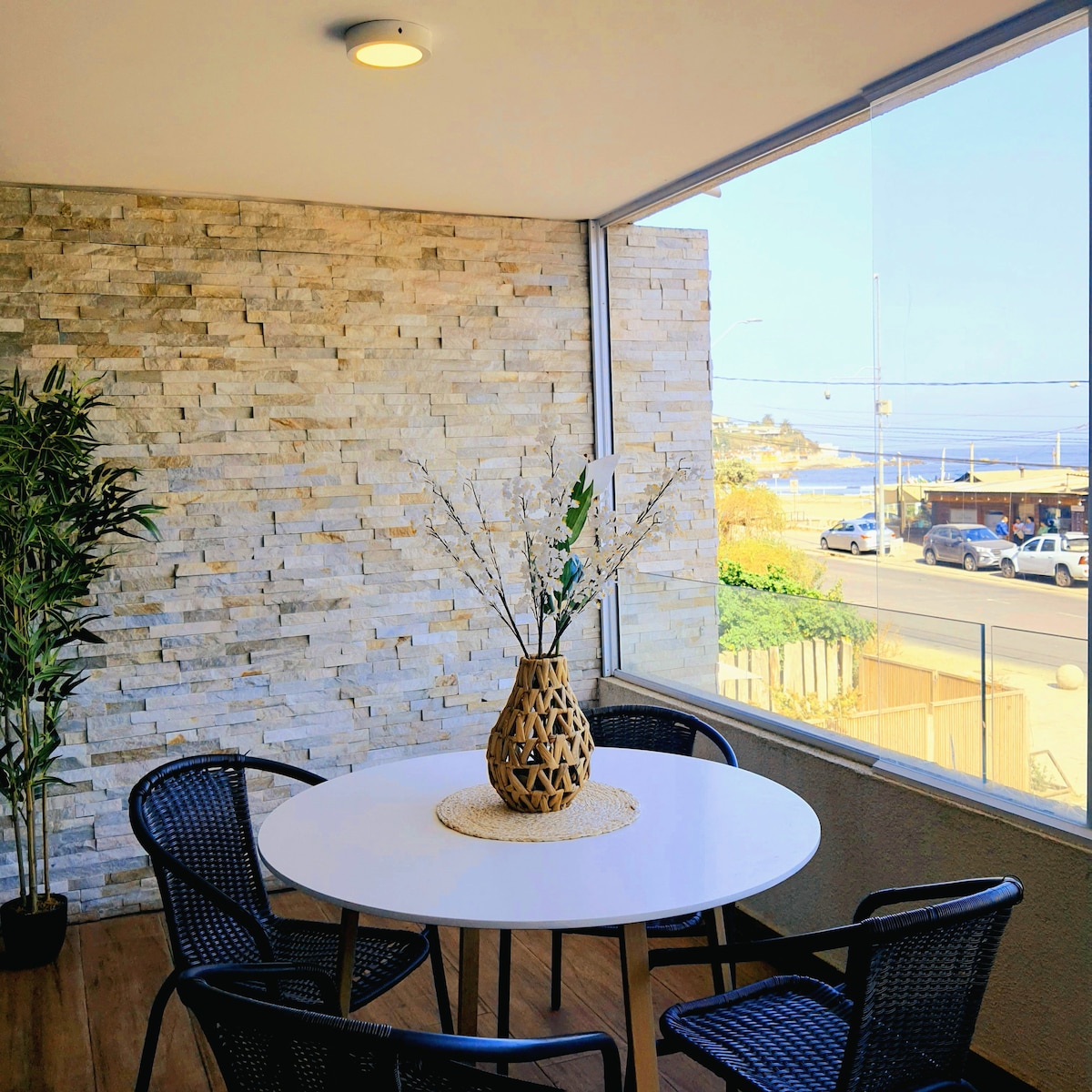 Hermoso departamento recién remodelado para ofrecer una experiencia inolvidable, en primera línea frente al mar cautiva todos tus sentidos. Preparado para estadías placenteras, cocina, coffee corner, escritorio-comedor, terraza, parrilla eléctrica, TV y Wifi. Caminado por bosques bajas a hermosa playa privada o a las piscinas, sauna, jacuzzi, canchas deportivas del condominio. Horcón tiene para comprar todo lo que necesites o a almorzar en los restaurantes. También puedes recorrer la costa.