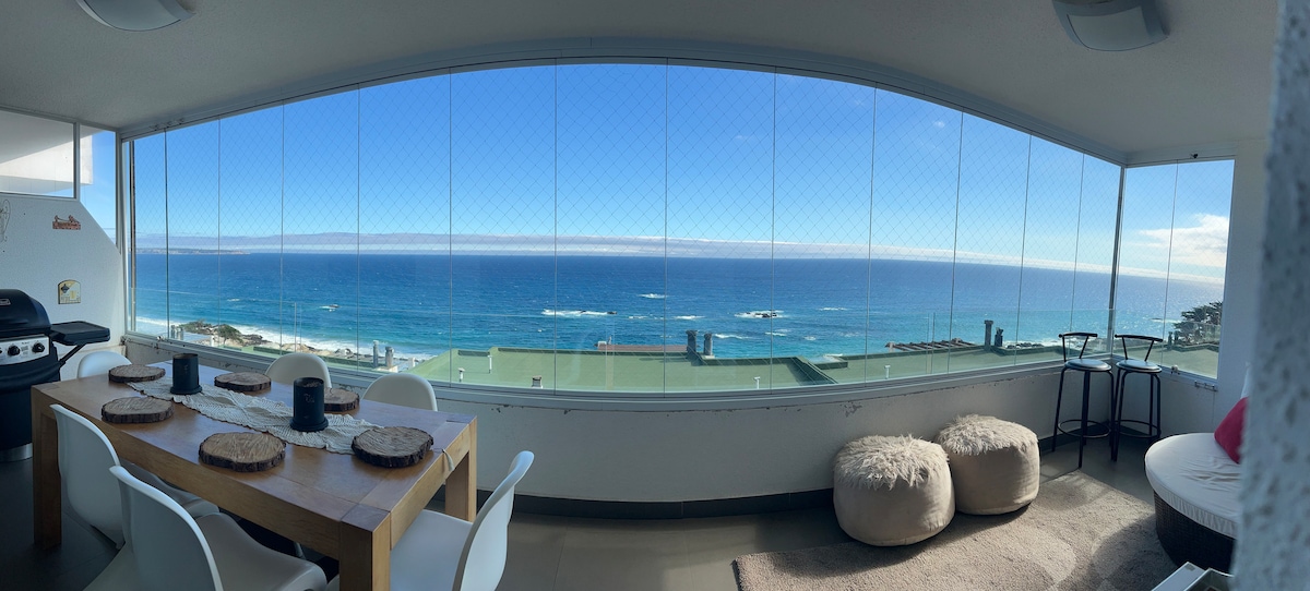 Zona muy turística, playas, surf, ciclismo, caminatas, cabalgatas, vida nocturna, restaurantes. Ubicación central, con acceso en ascensor a la playa Abanico, restaurantes, supermercado, iglesia y servicios. El departamento es nuevo, en primera fila, con una vista espectacular al mar. Está en primer piso y tiene terraza y jardín. 2 dormitorios en suite. Es ideal para parejas, aventureros y familias. Gran accesibilidad por transporte público, a 2 horas del aeropuerto de Santiago.