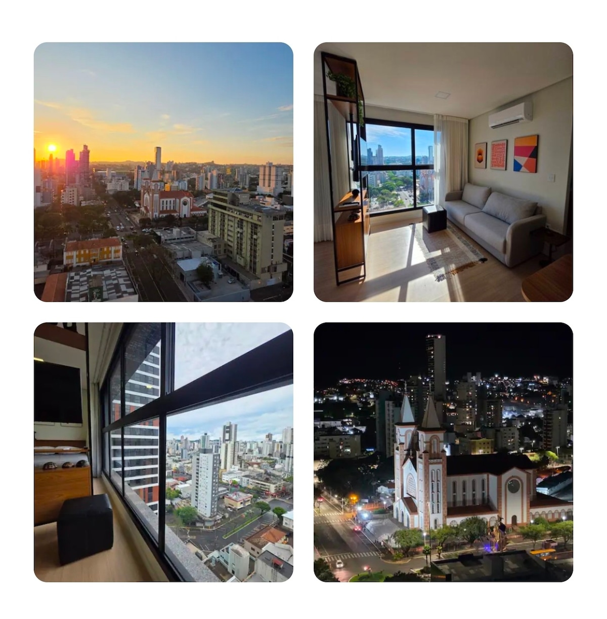 Studio Novo, mobiliado e decorado, centro de Chapecó. Janelas amplas. Uma vaga de garagem número 100 fica no G-1 no segundo andar logo quando passar o portão no segundo pilar dobrar a direita subir dois andares a vaga de garagem número 100 esta escrito no chão. NÃO É PERMITIDO UTILIZAR AREAS COMUNS QUE FICA NO 6° ANDAR. (ACADEMIA, PISCINA) ETC. ATENÇÃO, respeitara lei do silêncio O período do silêncio das 22 às 7 horas. se houver alguma perturbação, música alta etc gera multa.