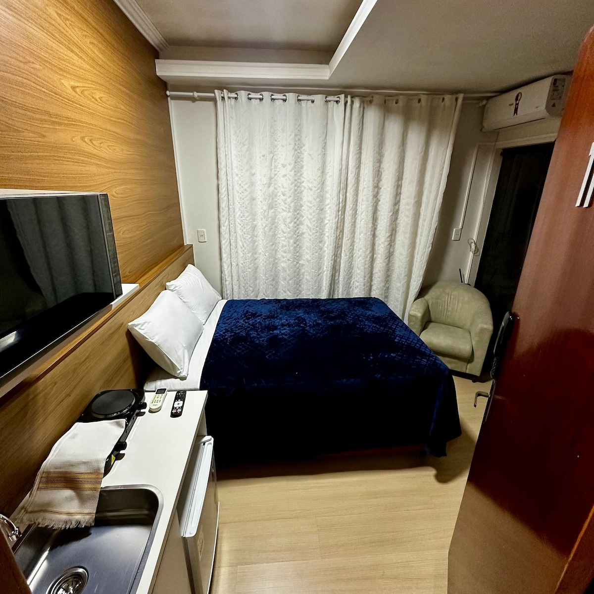 Studio completo e aconchegante! Hospede-se com conforto e praticidade, ideal para casais, famílias pequenas ou quem viaja a trabalho. O espaço conta com: 1 cama de casal, 1 sofá, 1 banheiro totalmente equipado, cozinha completa com utensílios, geladeira, fogão, micro-ondas e chaleira elétrica, máquina de lavar roupas, TV e Wi-Fi, climatizador e 1 vaga de garagem. Tudo isso em um condomínio completo, com infraestrutura de lazer e conveniência. Ideal para quem busca conforto e funcionalidade.