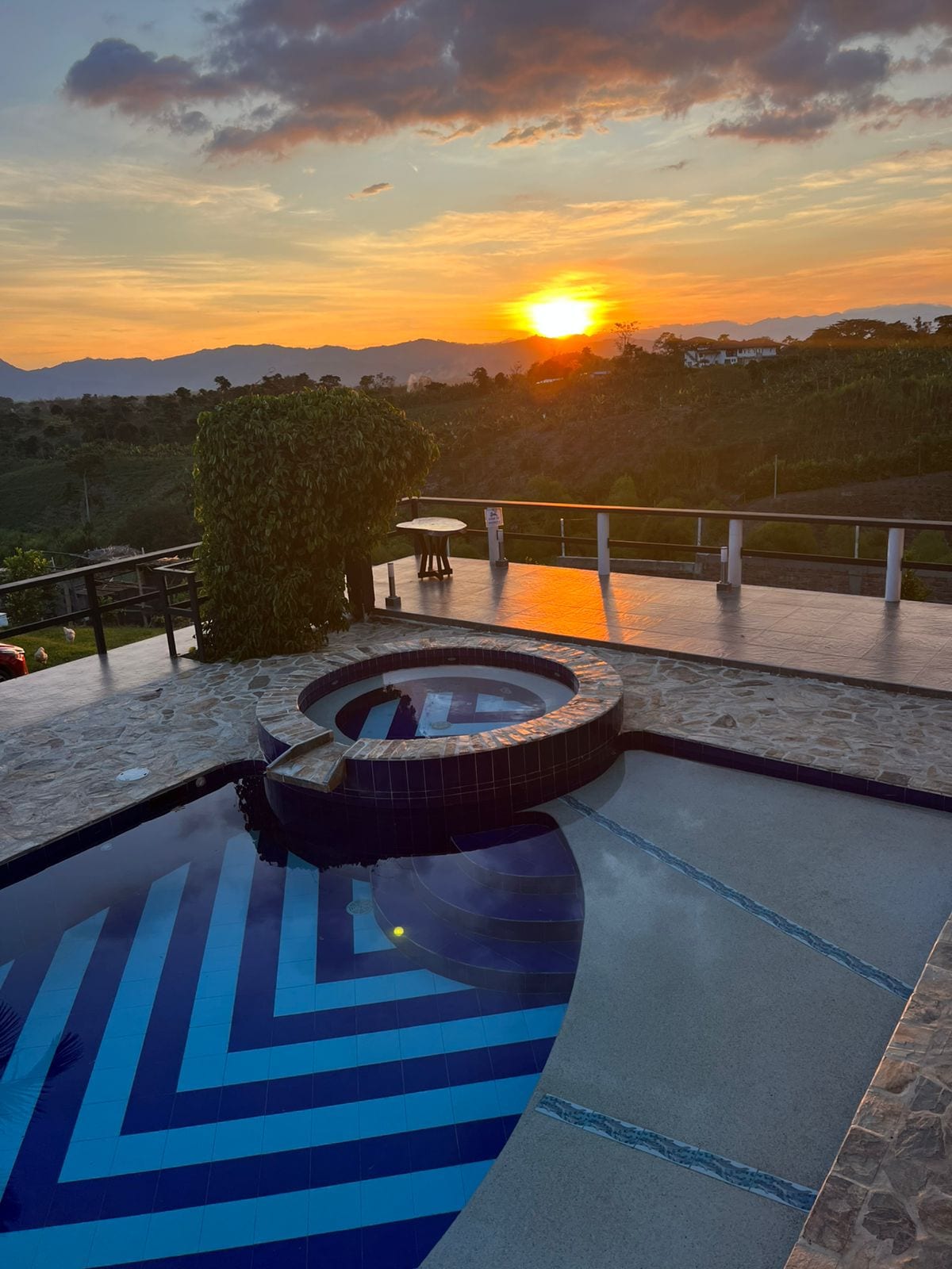 Es un alojamiento elegante donde puedes disfrutar con toda tu familia o amigos , en esta propiedad encontrarás grandes espacios abiertos y nuestra hermosa piscina con vista infinita con prados verdes alrededor también hermoso sendero ecológico Estamos cerca a todos los lugares turísticos del quindio