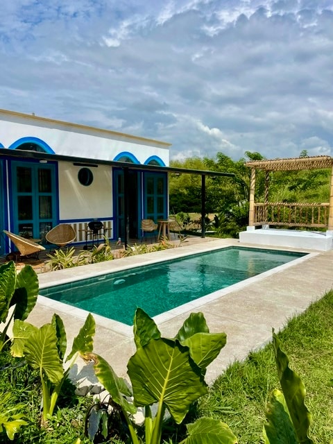 Casa Kewa es un alojamiento moderno cerca de Panaca, Quindío, con una vista panorámica espectacular del Eje Cafetero. Su clima soleado es ideal para disfrutar en la piscina, tomar el sol y relajarse en familia. Totalmente equipada, cuenta con jacuzzi climatizado, asador tipo barril, aire acondicionado, wifi y todas las comodidades. Rodeada de naturaleza, ofrece una experiencia única que invita a no querer salir de allí.