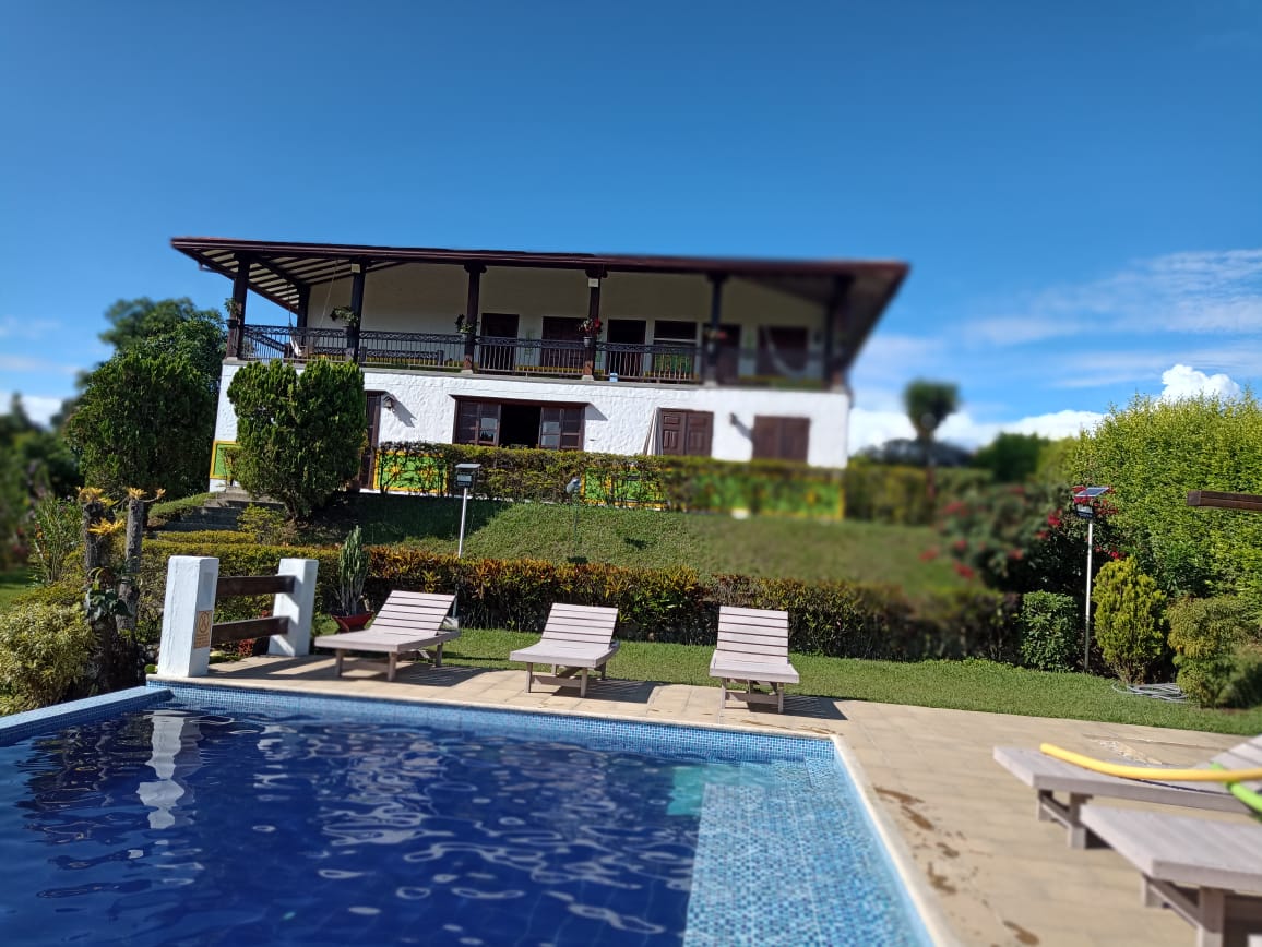 Rural and private setting, not shared with other guests. Located on the Montenegro–Quimbaya road, Km 3. Beautiful house, equidistant from Panaca (16 km), Parque del Café (13 km), and Los Arrieros (1.5 km). Exclusive rental: 5 to 17 guests. Great weather, fresh air, views, pool, cool house, wide halls, hammocks, gardens. BBQ, full kitchen, grill barrel, ping pong table. El Edén Airport: 30 km. THE ROAD HAS 600 UNPAVED METERS UNTIL YOU REACH THE FARM.